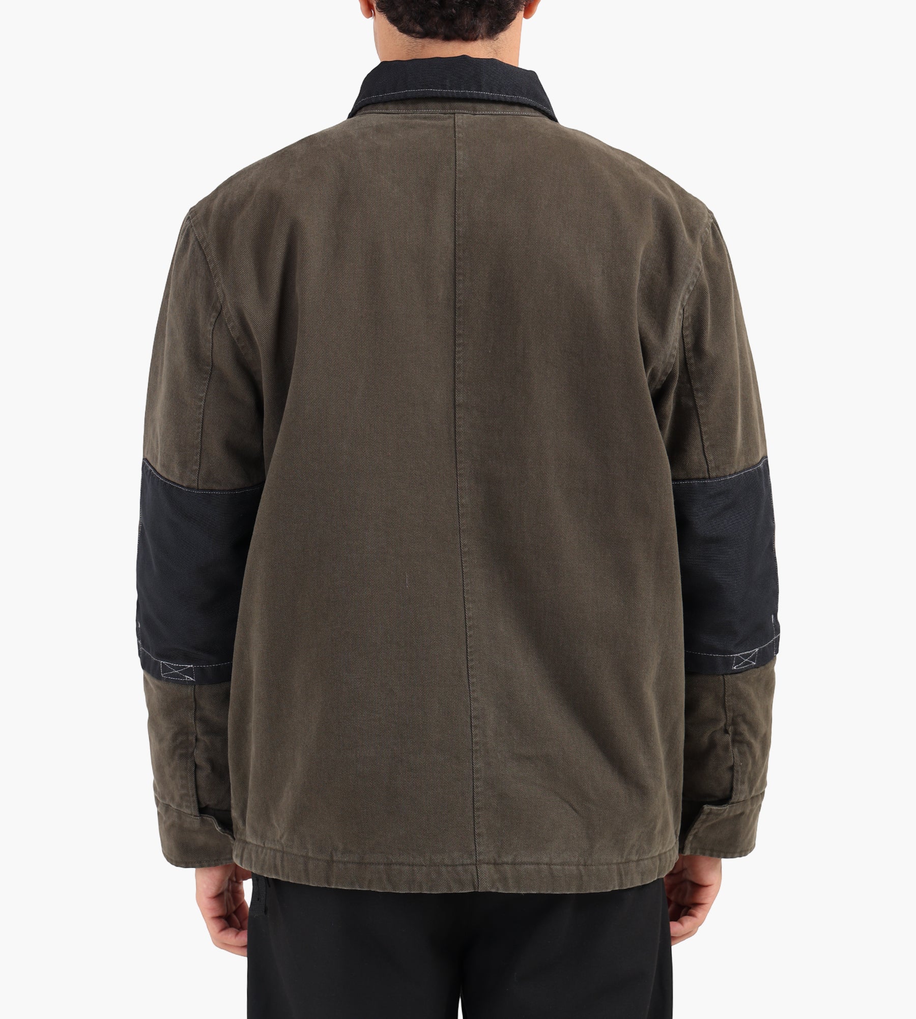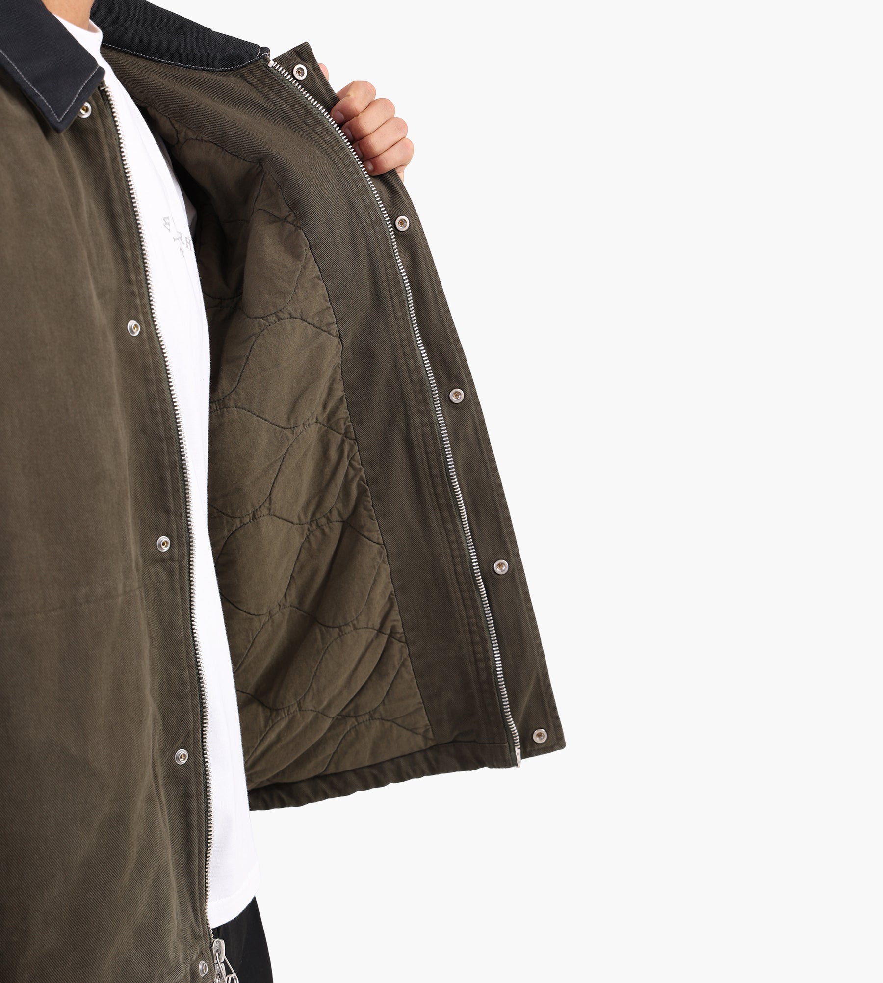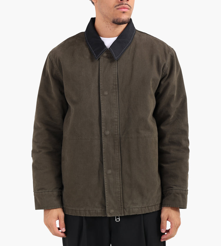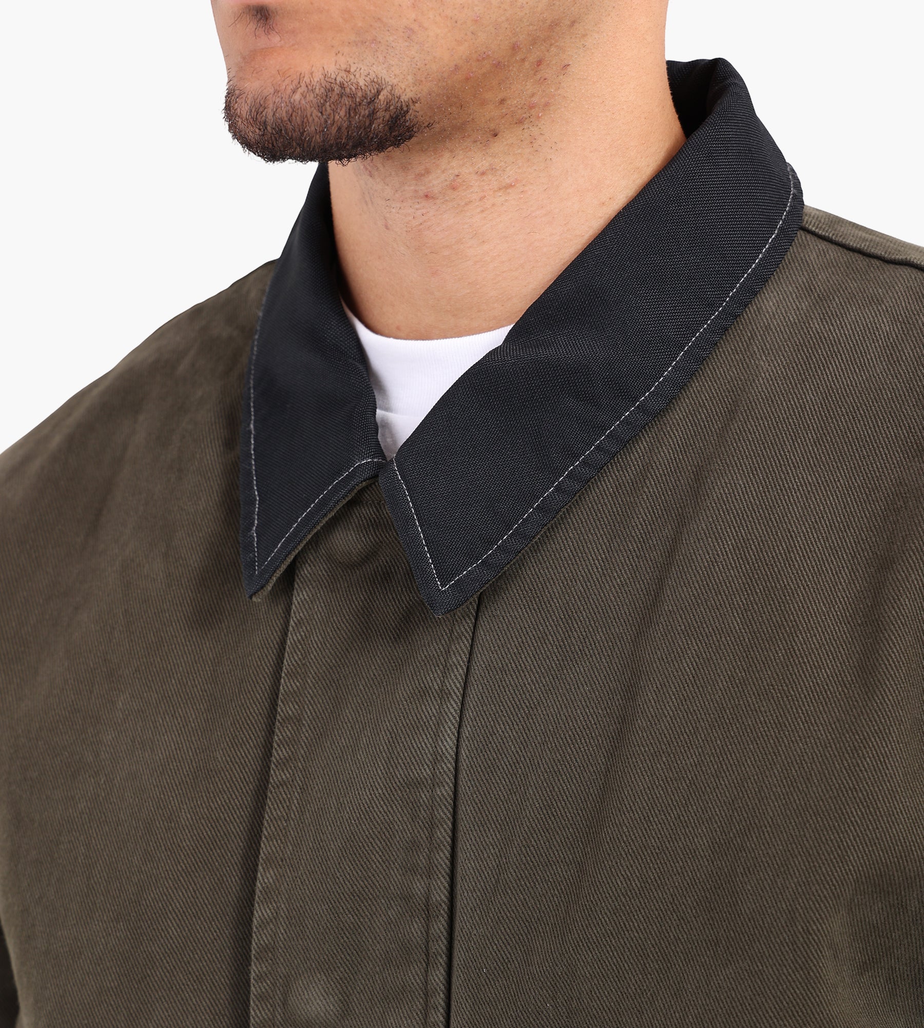 Designed for adaptability, the chore jacket transitions seamlessly across settings, offering a balance of heritage inspiration and contemporary design. The Military Green tone enhances its timeless appeal, while the tailored fit ensures ease of movement and effortless layering.
