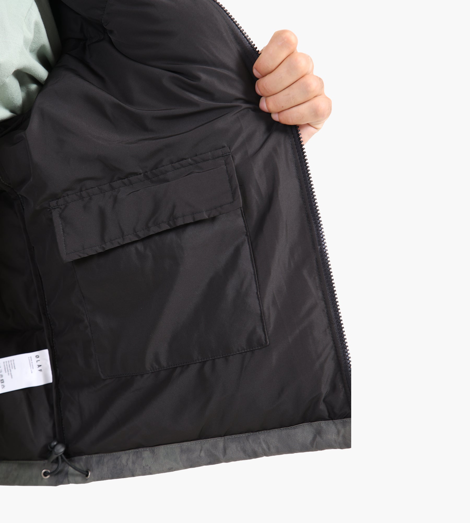 The tonal contrast adds a refined depth to the design, making it equally suited for urban commutes or relaxed weekend outings. With its soft, padded feel and practical layering potential, this jacket delivers comfort and adaptability for cooler climates.