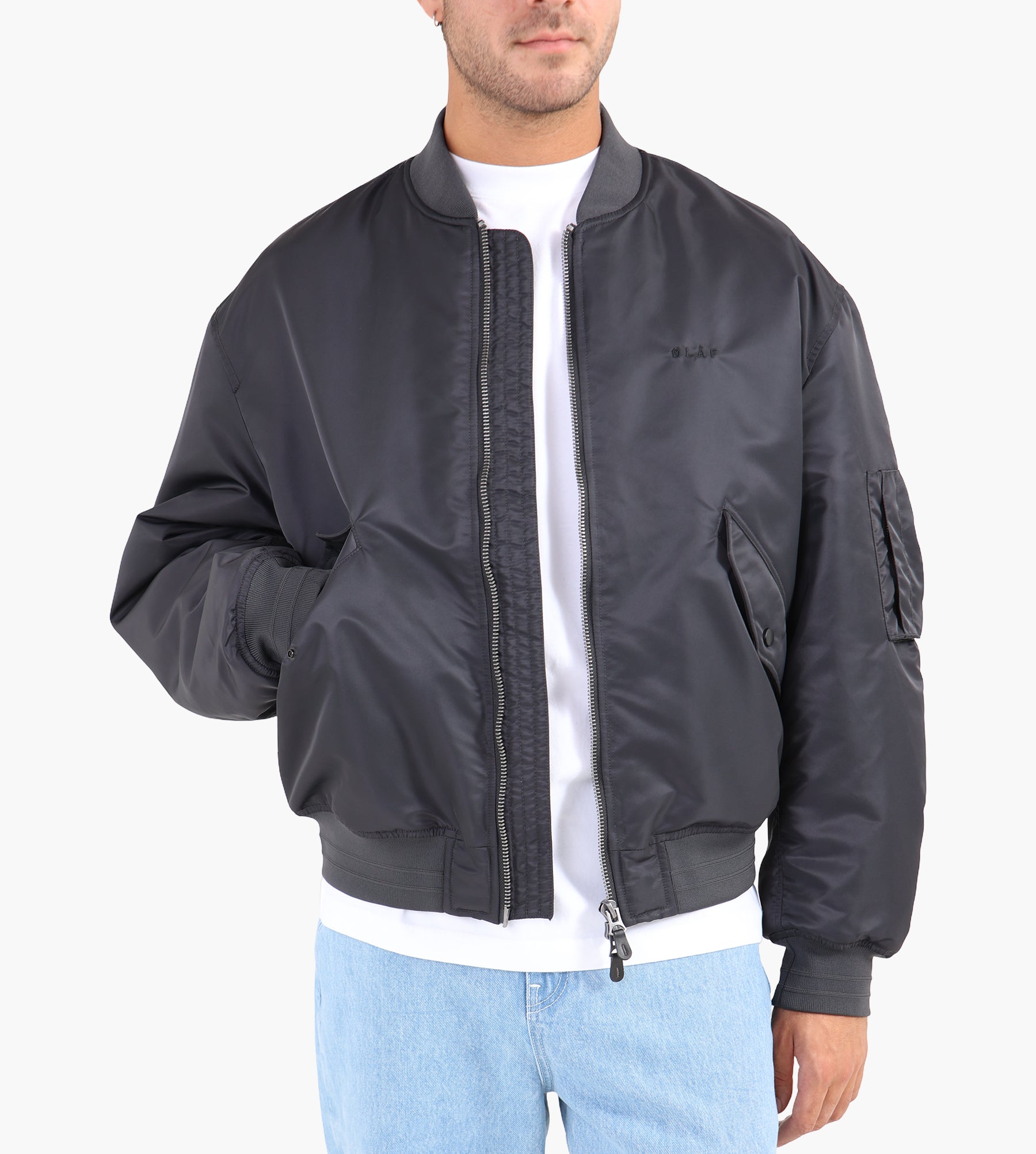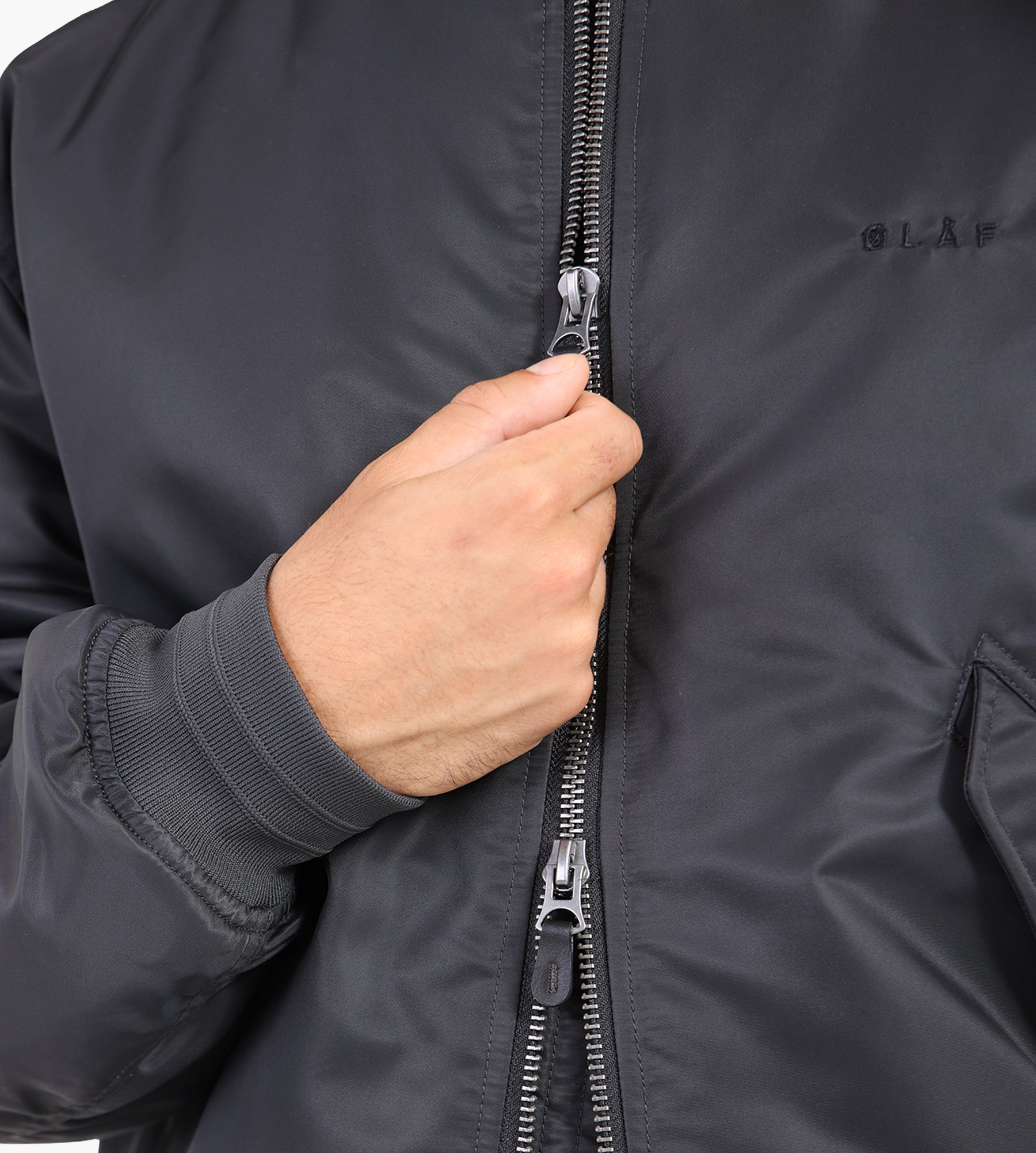 The OLAF Bomber Jacket in Charcoal is crafted from a robust yet lightweight fabric blend, offering a contemporary take on a classic silhouette. Its deep charcoal tone provides a versatile neutral base, ideal for urban layering or transitional weather. Precision tailoring ensures clean lines, while ribbed trims anchor the fit and enhance durability.