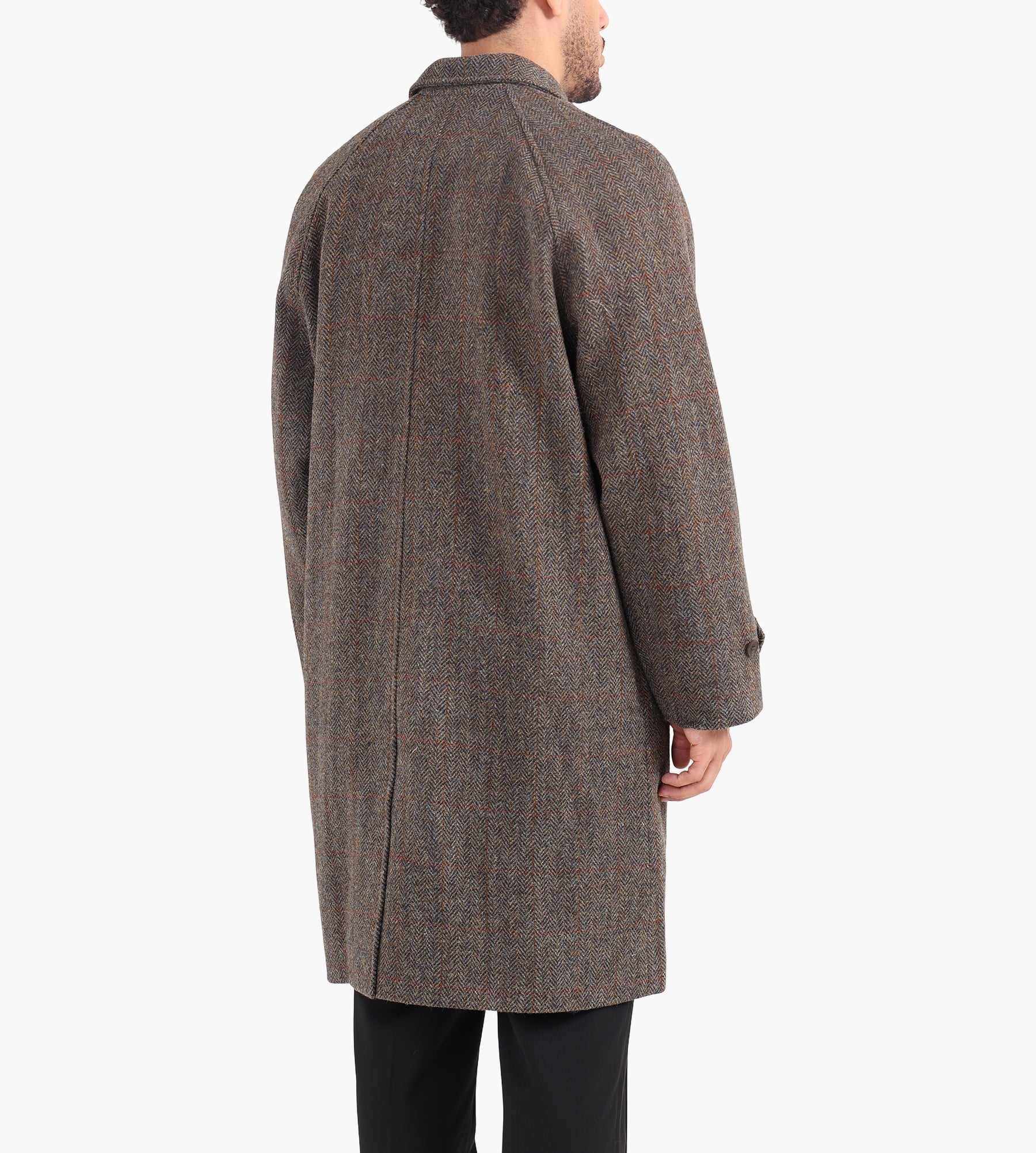 The Palmes Cedric Wool Coat in Brown is crafted from 100% Virgin Wool Harris Tweed, offering a robust yet refined texture ideal for colder months. Its viscose lining adds a smooth layer for effortless wear, while the hidden button placket and single visible top button create a clean, streamlined aesthetic.
