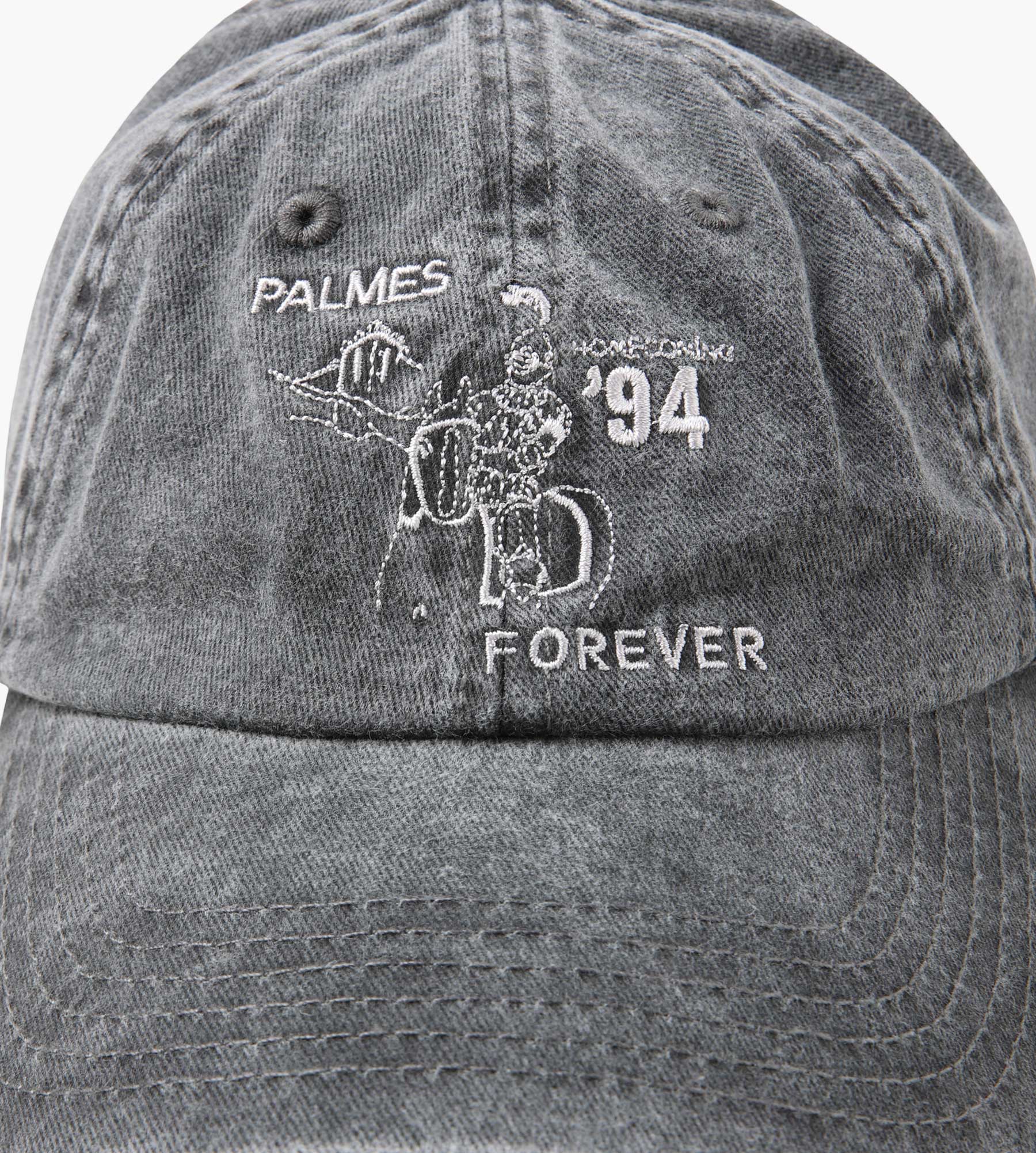 The Palmes Forever 6-Panel Cap in Charcoal is crafted from 100% recycled cotton, offering a sustainable take on a timeless accessory. Its structured 6-panel construction and curved brim deliver a classic silhouette, while the embroidered logo on the front nods to Palmes' tennis-inspired aesthetic.