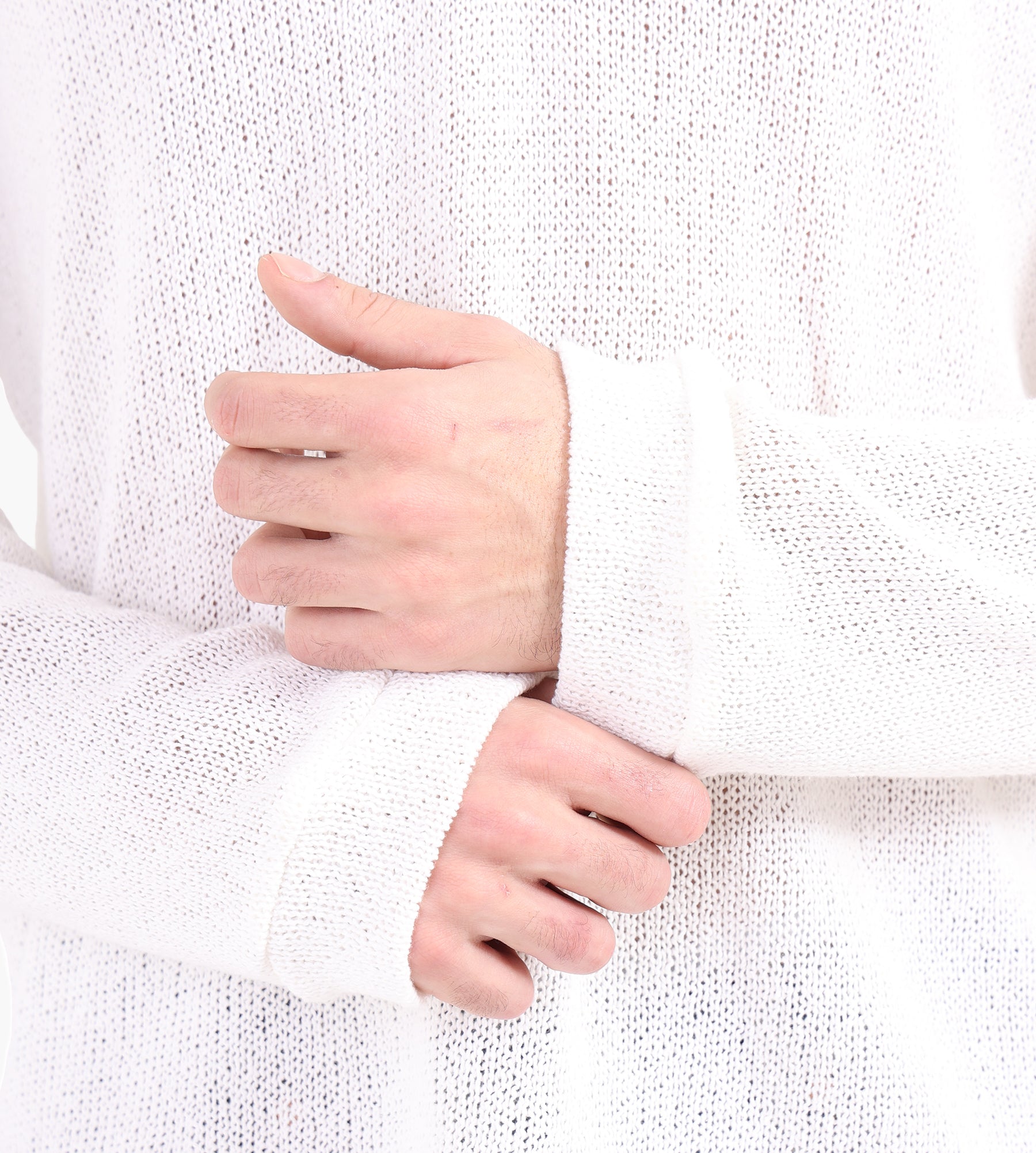 The ribbed collar and cuffs anchor the silhouette, while the dense knit construction ensures warmth and durability. Perfect for cooler days, the sweater’s relaxed fit offers comfort without compromising on a polished look.