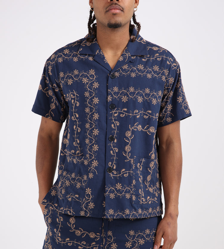 Potato Head Yin-Yang Paisley Shirt Navy Pink Beige