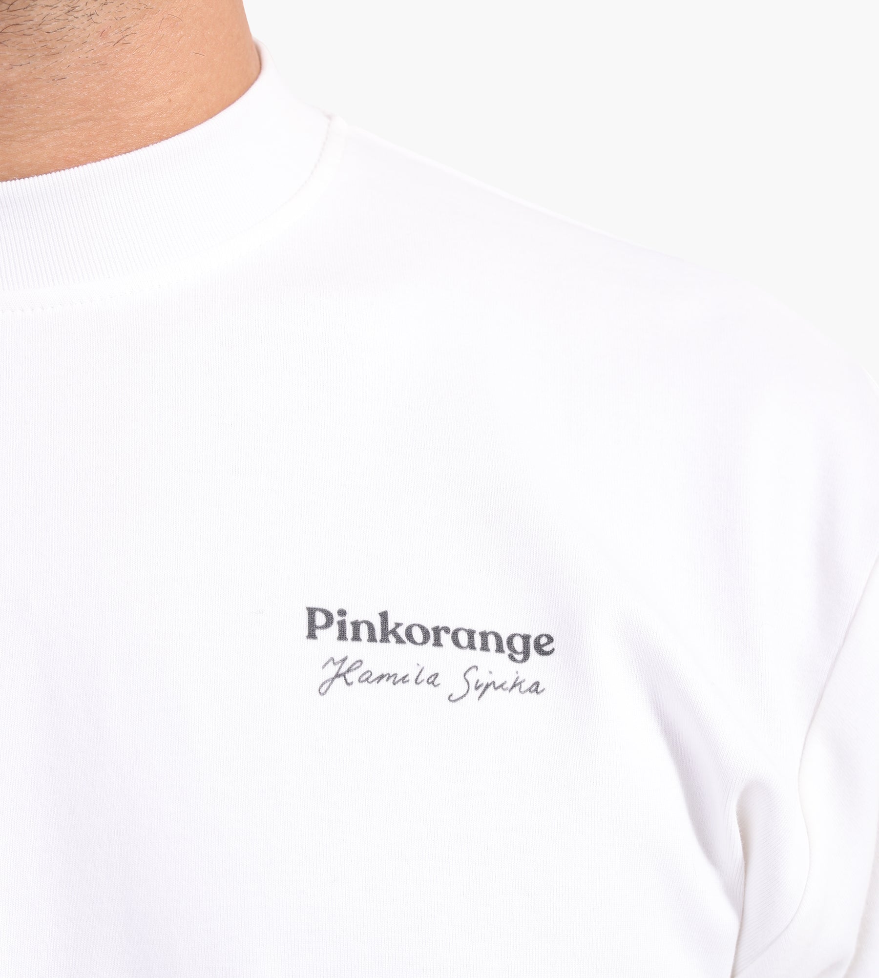 The Pinkorange Primrose T-Shirt in Off White is crafted from premium cotton for a soft, breathable feel. Its lightweight construction ensures all-day comfort, while the neutral tone complements a versatile wardrobe. Designed with a clean, minimalist aesthetic, it transitions effortlessly from casual layering to standalone wear.
