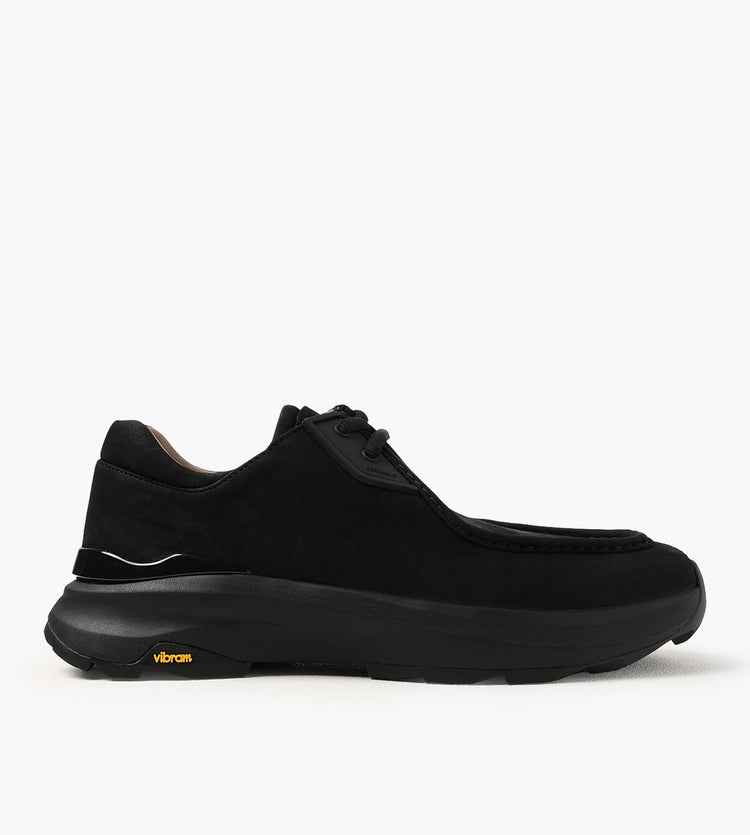 Referenc’s Fernabee MegaGrip® SP All Black Nubuck redefines the moc-toe silhouette with a premium Italian nubuck upper, offering a supple yet durable finish in tonal black. Designed in collaboration with VIBRAM®, the shoe integrates their MegaGrip® outsole, ensuring superior traction and durability across varied terrains. A leather lining enhances breathability, while the removable memory foam insole delivers moisture and odor management for extended wear.