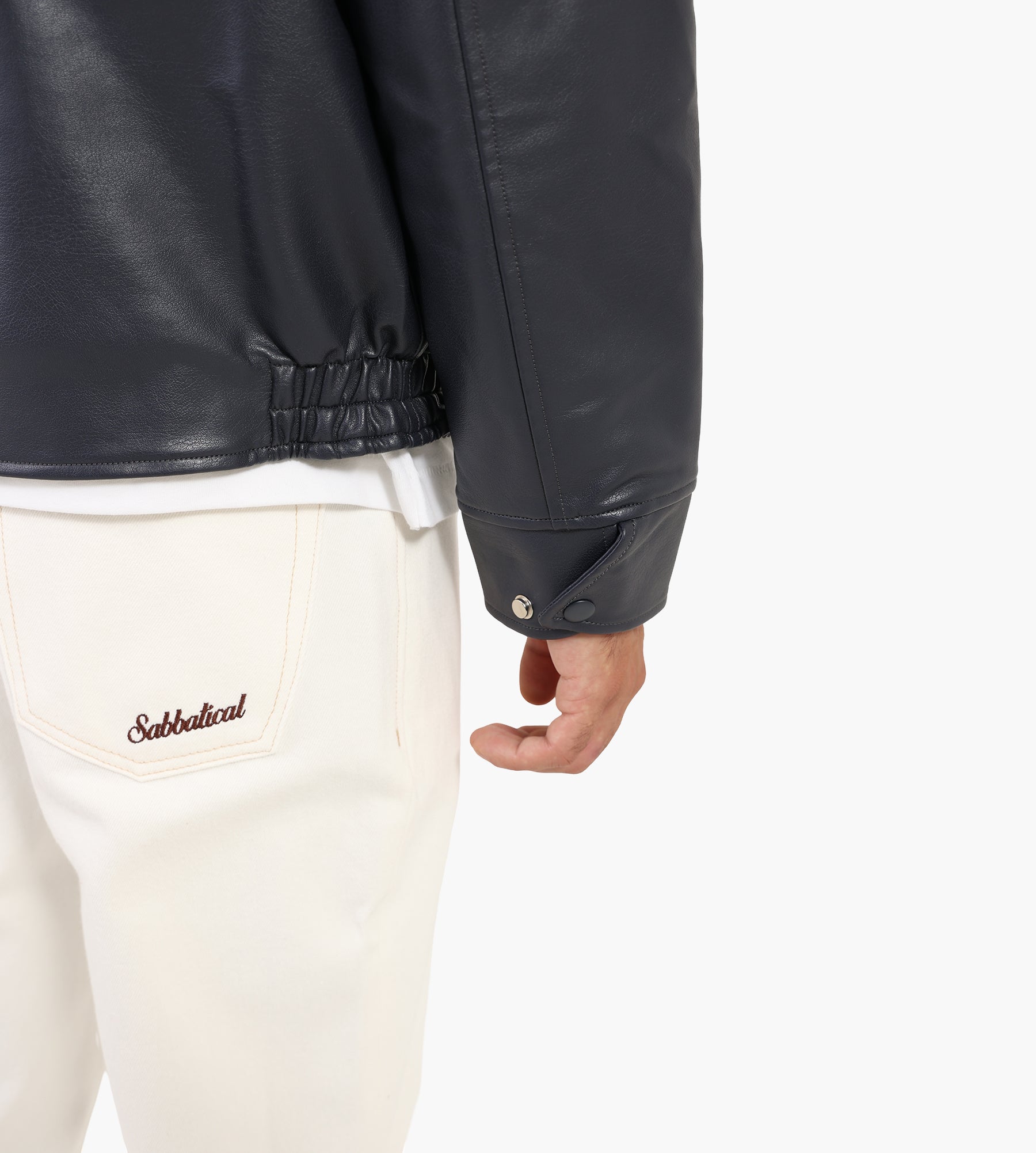 The Sabbatical AJ Jacket Navy redefines the classic bomber silhouette in a rich navy hue, offering a timeless layer for transitional weather. Its clean lines and tailored proportions create a polished yet relaxed profile, ideal for daily wear.