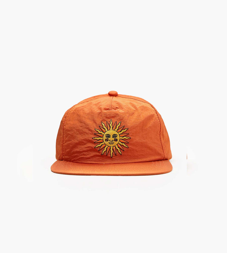The Sabbatical Free Information Cap in Burning Orange is crafted from durable cotton twill, offering a structured yet breathable feel. Its vibrant hue and six-panel construction provide a timeless silhouette, anchored by a pre-curved brim for sun protection.