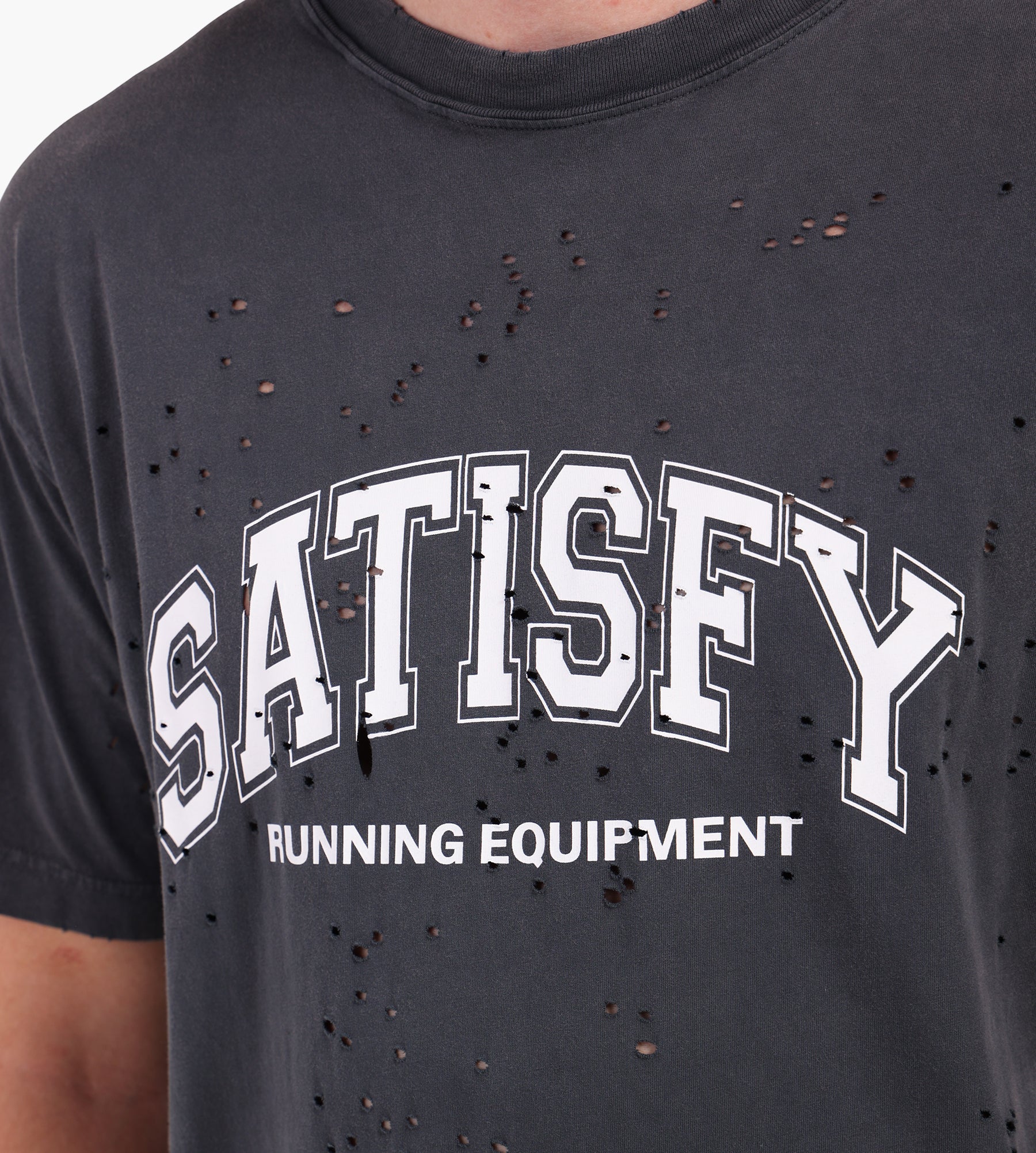 The Satisfy MothTech T-Shirt in Aged Black is crafted from a lightweight, perforated fabric engineered for high-performance running. Its unique MothTech construction enhances breathability and moisture management, keeping you cool and dry even during intense sessions. The aged black finish adds a subtle, lived-in character to the technical design.