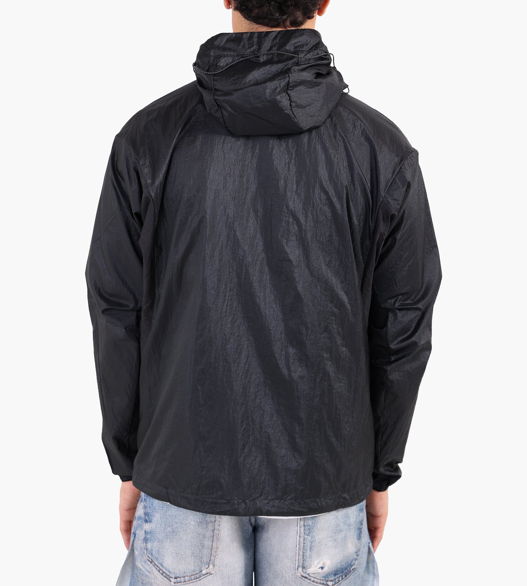 The Satisfy Pertex Diamond Fuse Windbreaker in Black is crafted from bluesign® approved Pertex® Shield Diamond Fuse 2.5L fabric, combining 100% nylon with a 30D ripstop weave. Engineered for performance, it delivers waterproof, windproof, and breathable protection in a remarkably lightweight 7.05 oz package. Fully seam-taped and equipped with YKK® Aquaguard® zippers, this jacket ensures uncompromising weather resistance while maintaining a sleek, minimalist profile.