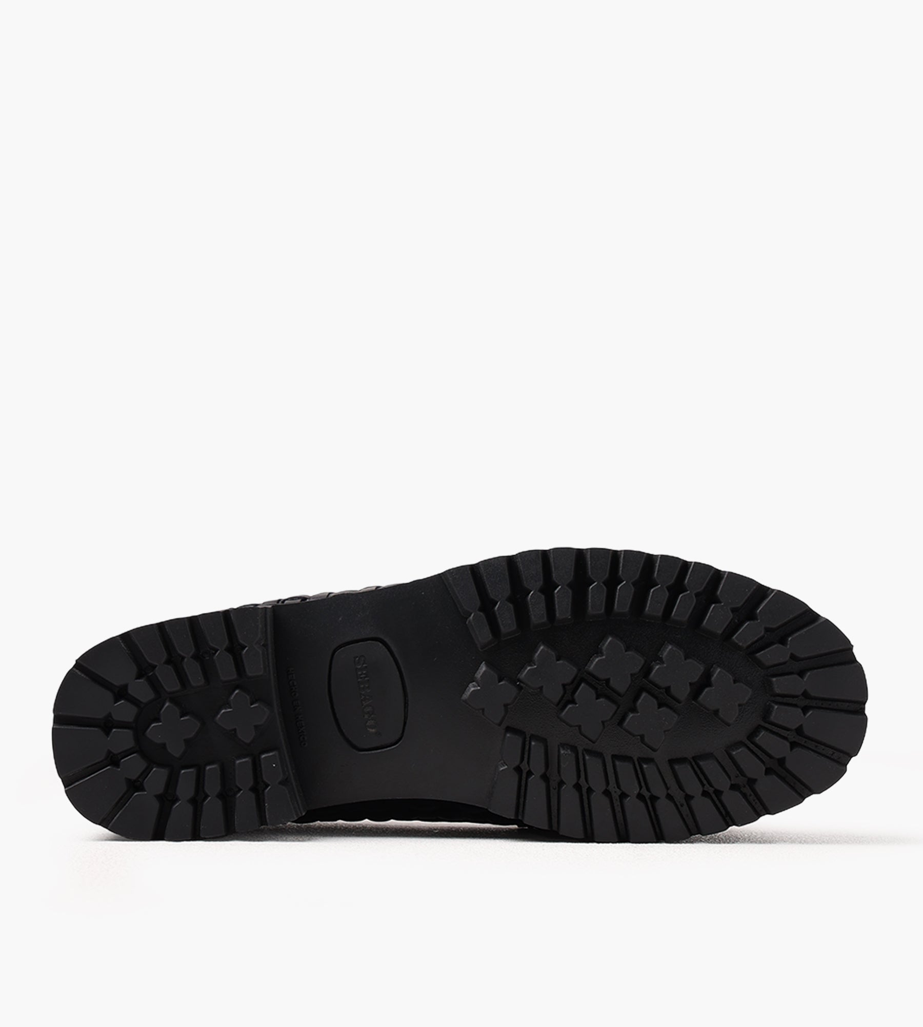 The Sebago OTIS VAMP LUG in Black is meticulously crafted with a full leather construction, from the upper to the insole, ensuring durability and a refined finish. Anchored by a leather sole, this loafer is designed for both longevity and a sophisticated profile, while the 3.0cm heel adds subtle elevation without compromising comfort.
