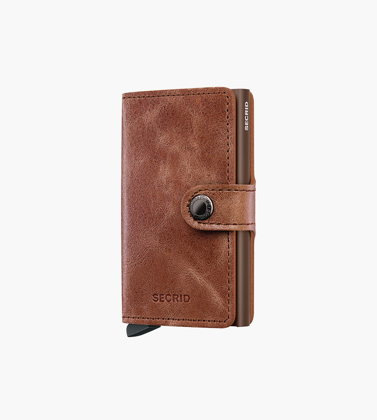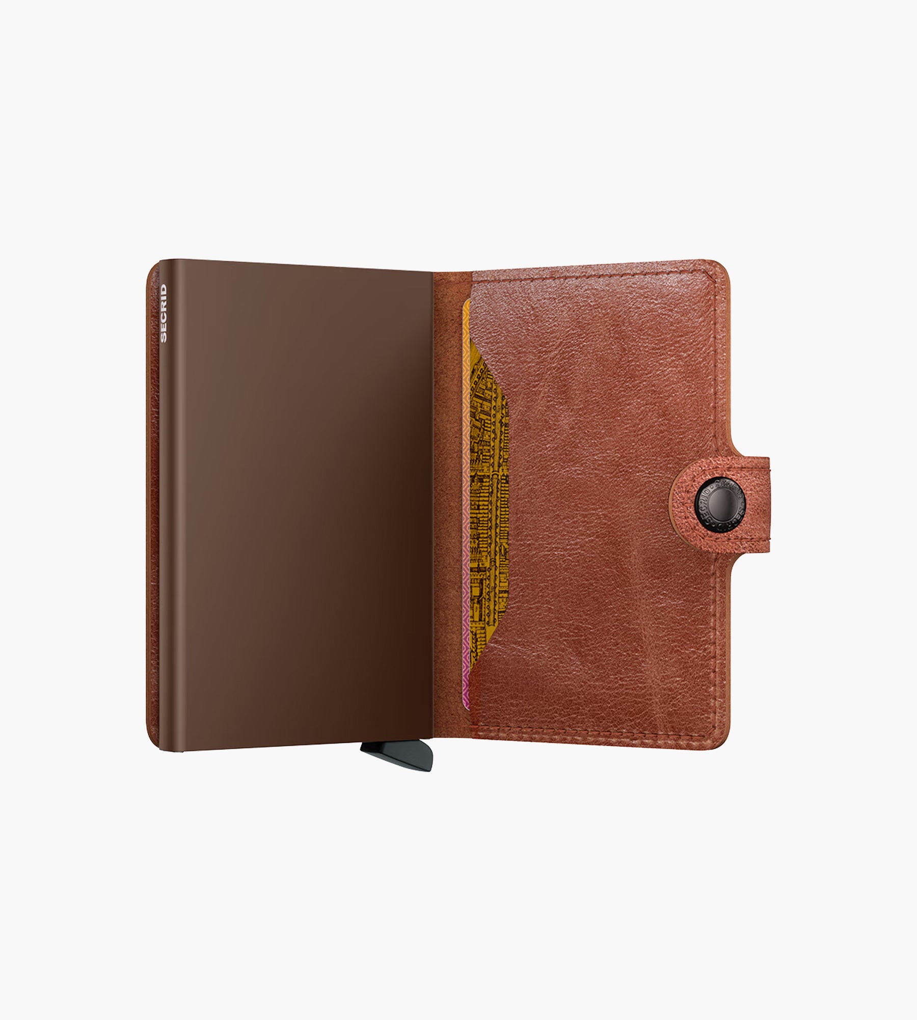 The SECRID Miniwallet Vintage in Cognac Brown combines timeless European craftsmanship with modern innovation. Crafted from aniline-dyed European cowhide, its vintage leather features a carefully abraded surface and wax finish, creating a rich, stonewashed look. At its core, the patented aluminum Cardprotector offers RFID/NFC protection, shielding your cards from digital theft while ensuring durability tested for over 300,000 operations.