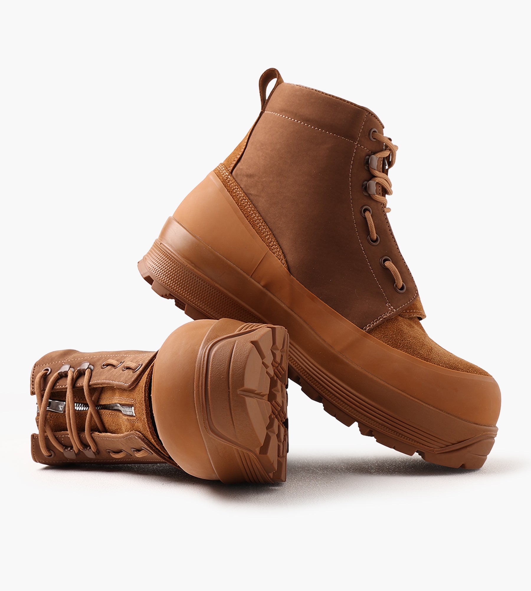 The Ten-C Ortles Marrone Cacao boots are crafted from premium brown leather, offering a rich texture and enduring durability. Anchored by a rugged sole design, these boots reflect Ten-C's commitment to functional craftsmanship and understated elegance.