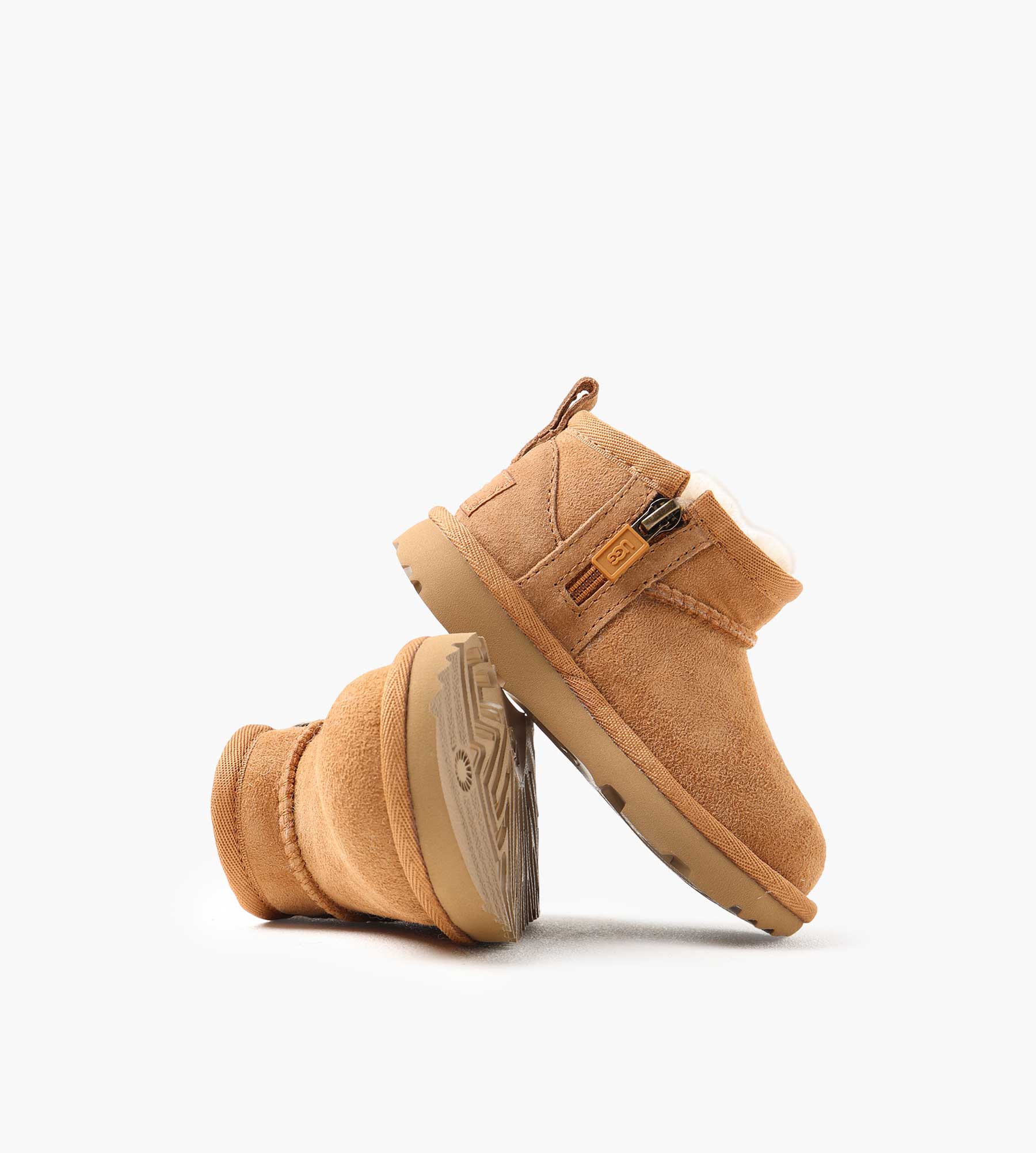 Sheepskin’s breathable properties ensure comfort across varying temperatures, while the ultra-lightweight sole provides cushioning and durability for all-day wear. Perfect for casual outings or lounging, these boots deliver timeless UGG comfort in a compact form.