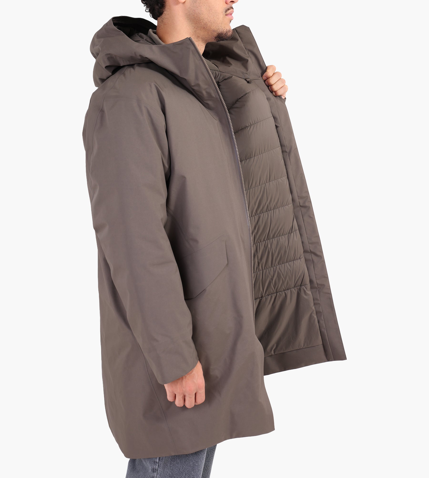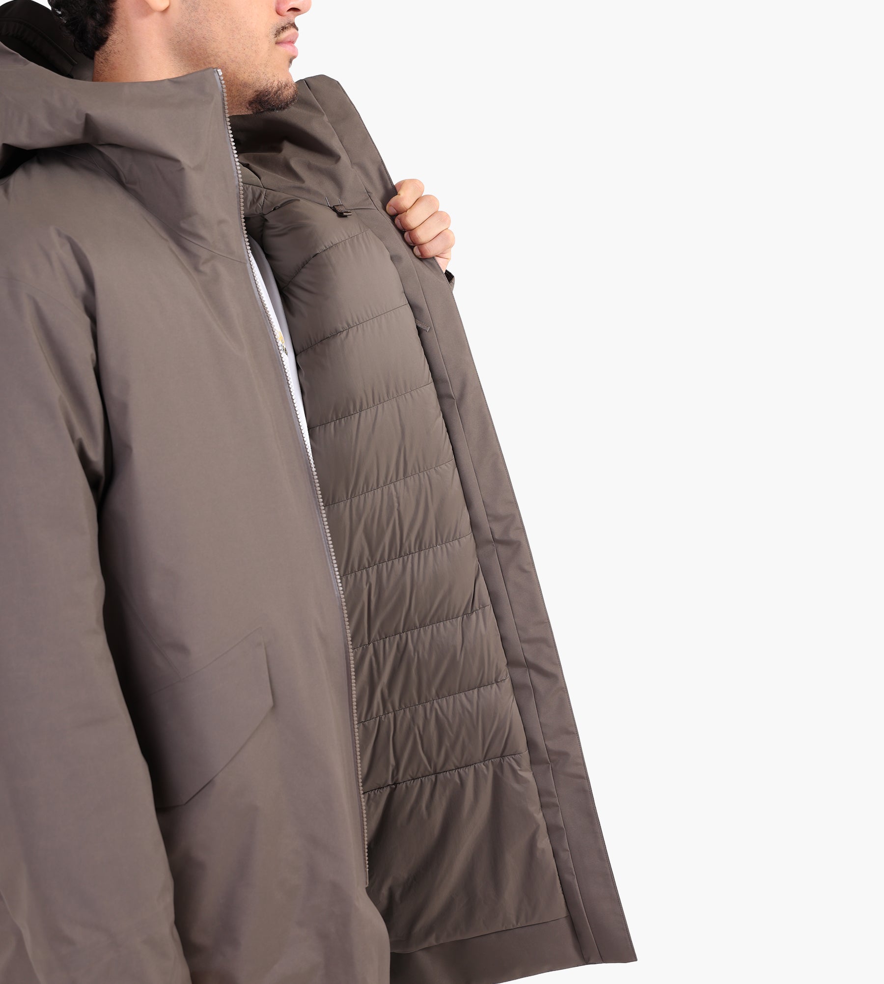 The Veilance Monitor Down Coat in Gnosis is crafted with advanced technical fabrics, designed to endure extreme outdoor conditions while maintaining a minimalist aesthetic. Its weatherproof shell provides robust protection against the elements, while premium down insulation ensures exceptional warmth without unnecessary bulk. Clean lines and a pared-back design make this coat a seamless addition to any environment.