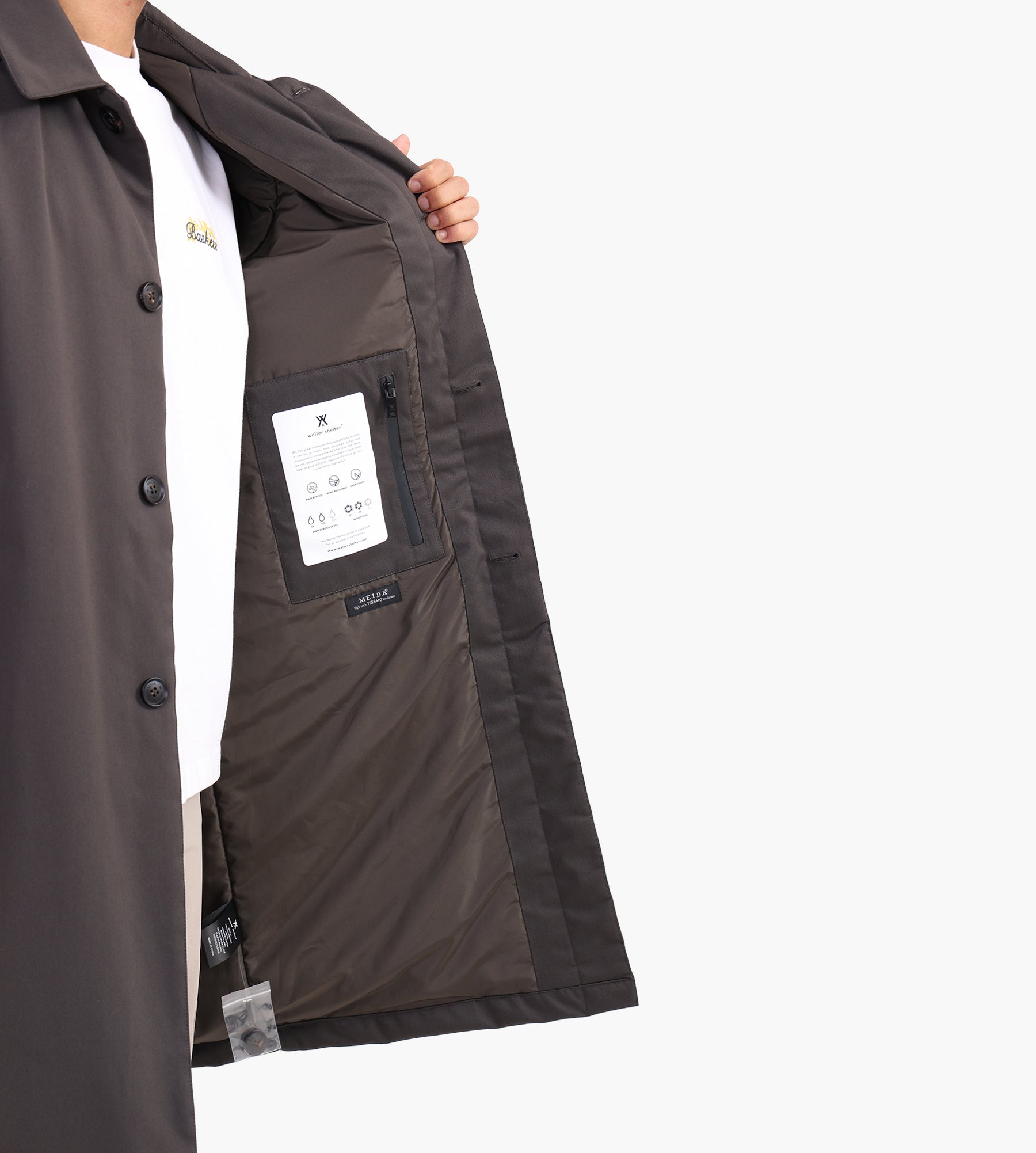 Designed in a classic carcoat silhouette, it transitions effortlessly between urban commutes and weekend escapes. The Nin Spin fabric resists creasing and provides a smooth hand, ensuring comfort during extended wear while maintaining a polished appearance.