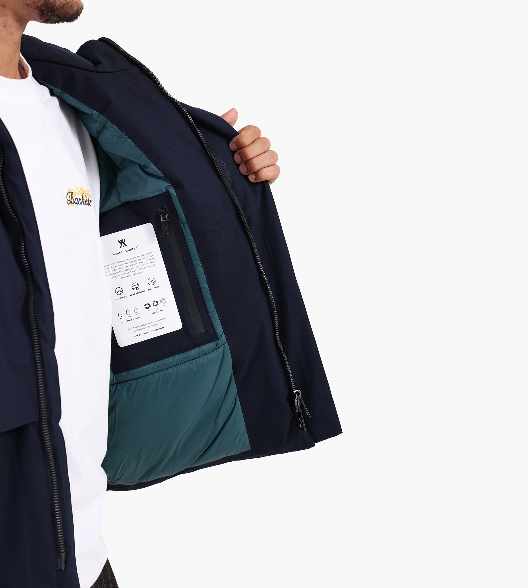 The Welter Shelter Patje P Jacket in Navy offers a refined balance of form and function, tailored for versatile layering. Its weather-resistant shell ensures protection against unexpected elements, while the deep navy tone delivers understated elegance suitable for urban or outdoor settings.