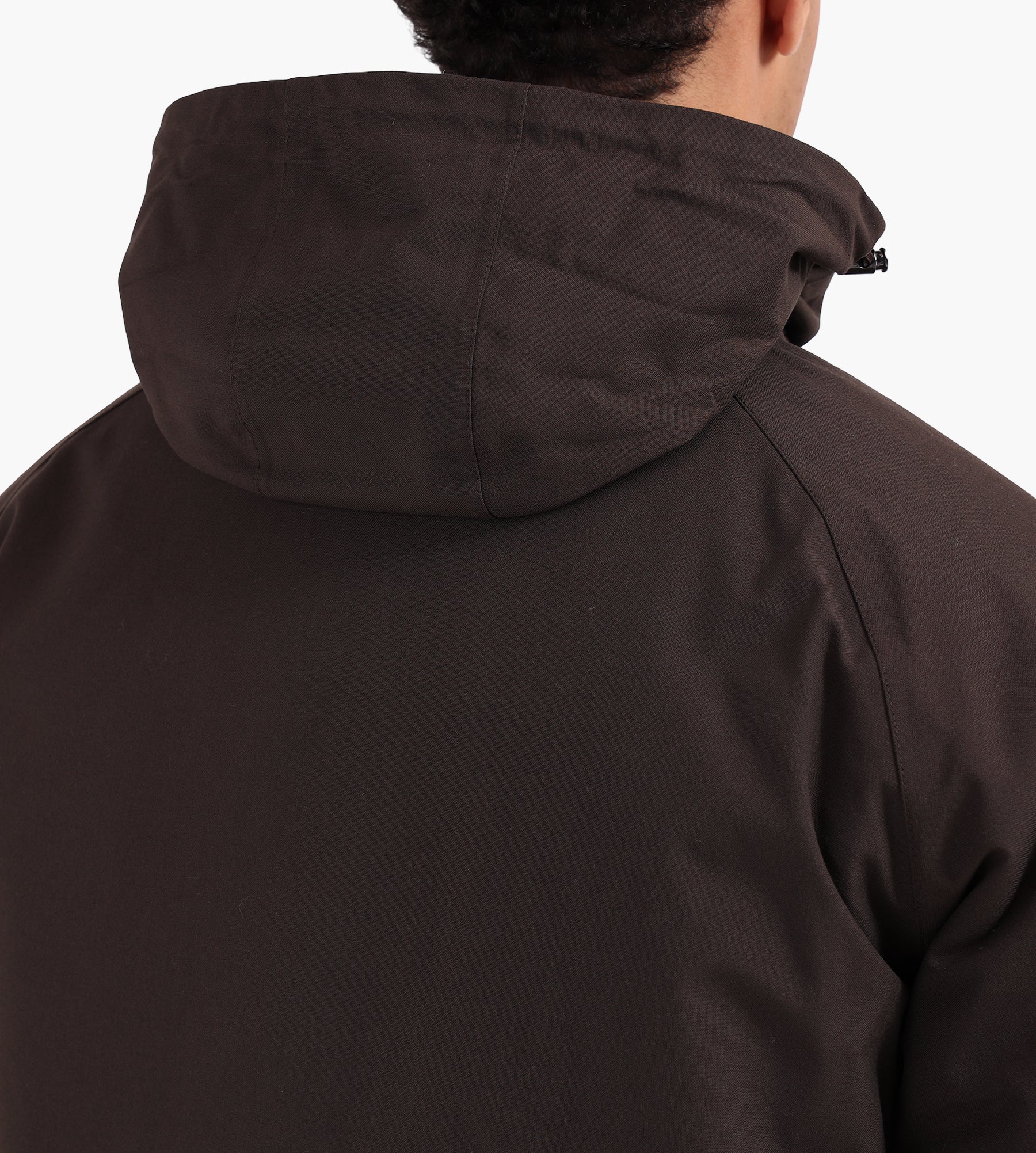 - Hidden adjustable hood in collar