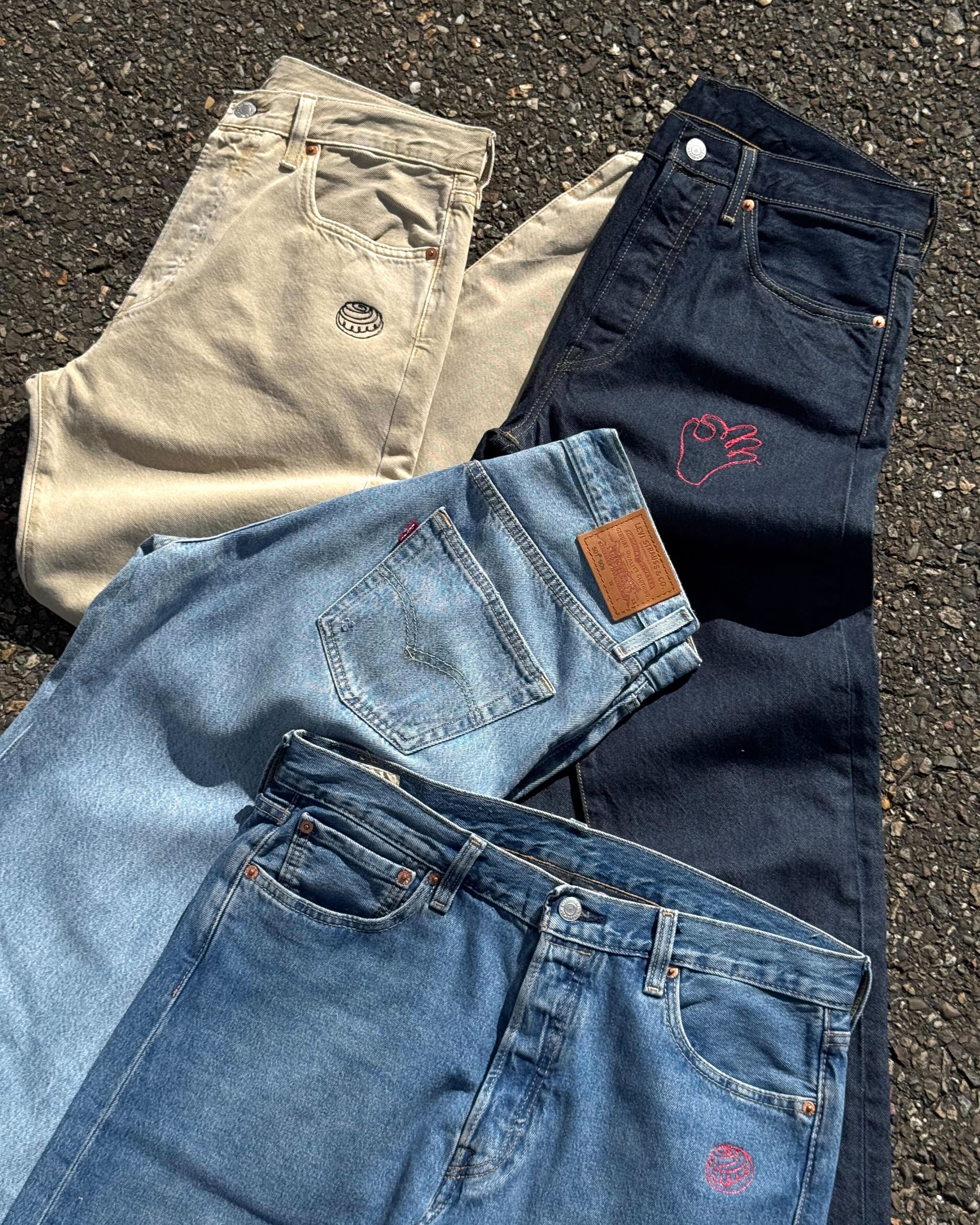 Get your hands on our limited edition Levi’s® 501® jeans - each finished with a custom Café Baskèts embroidery. Available in five colourways and multiple sizes, while stock lasts.