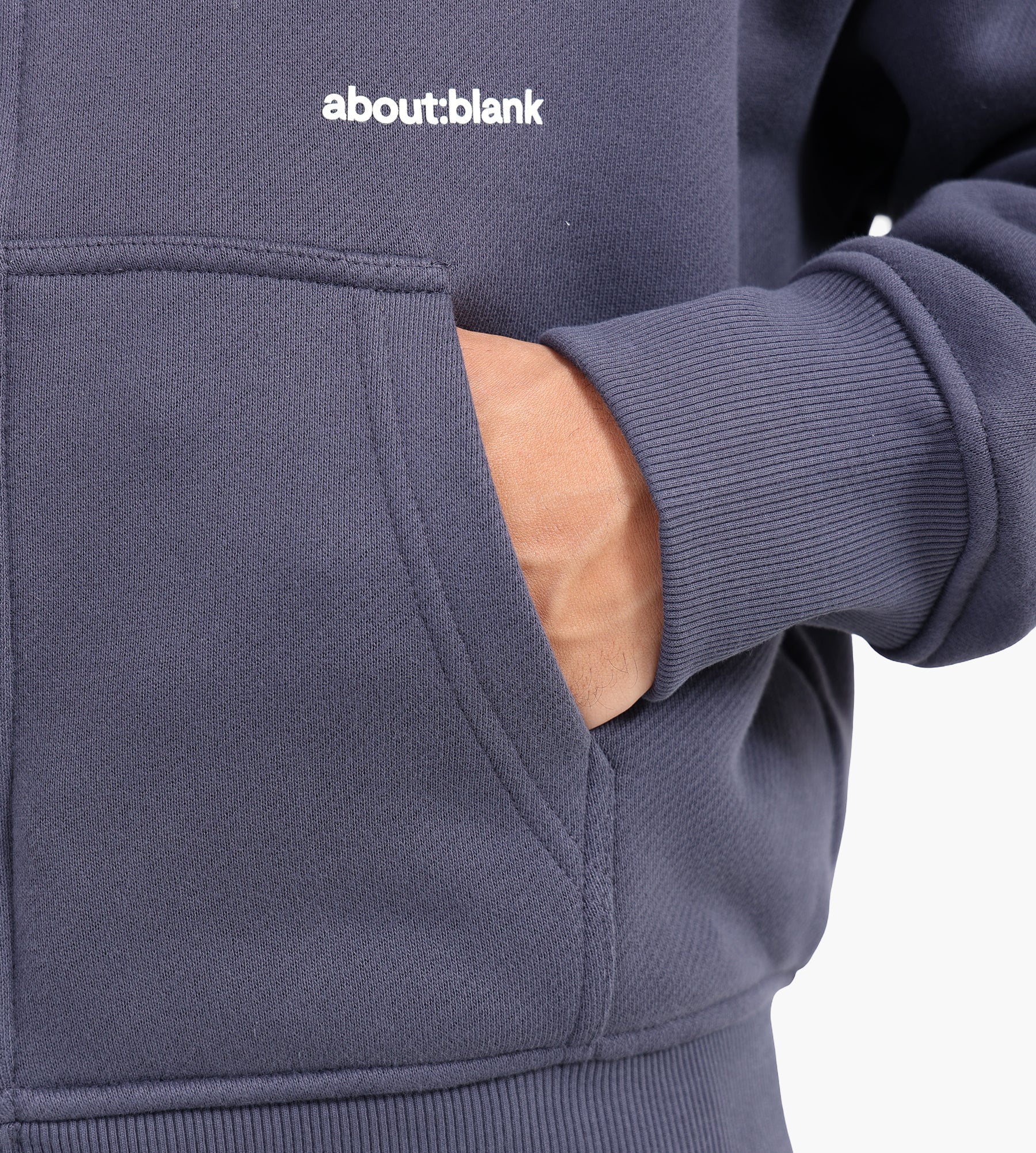 about:blank Box Zip Hoodie Cotton Smoke Blue Ecru