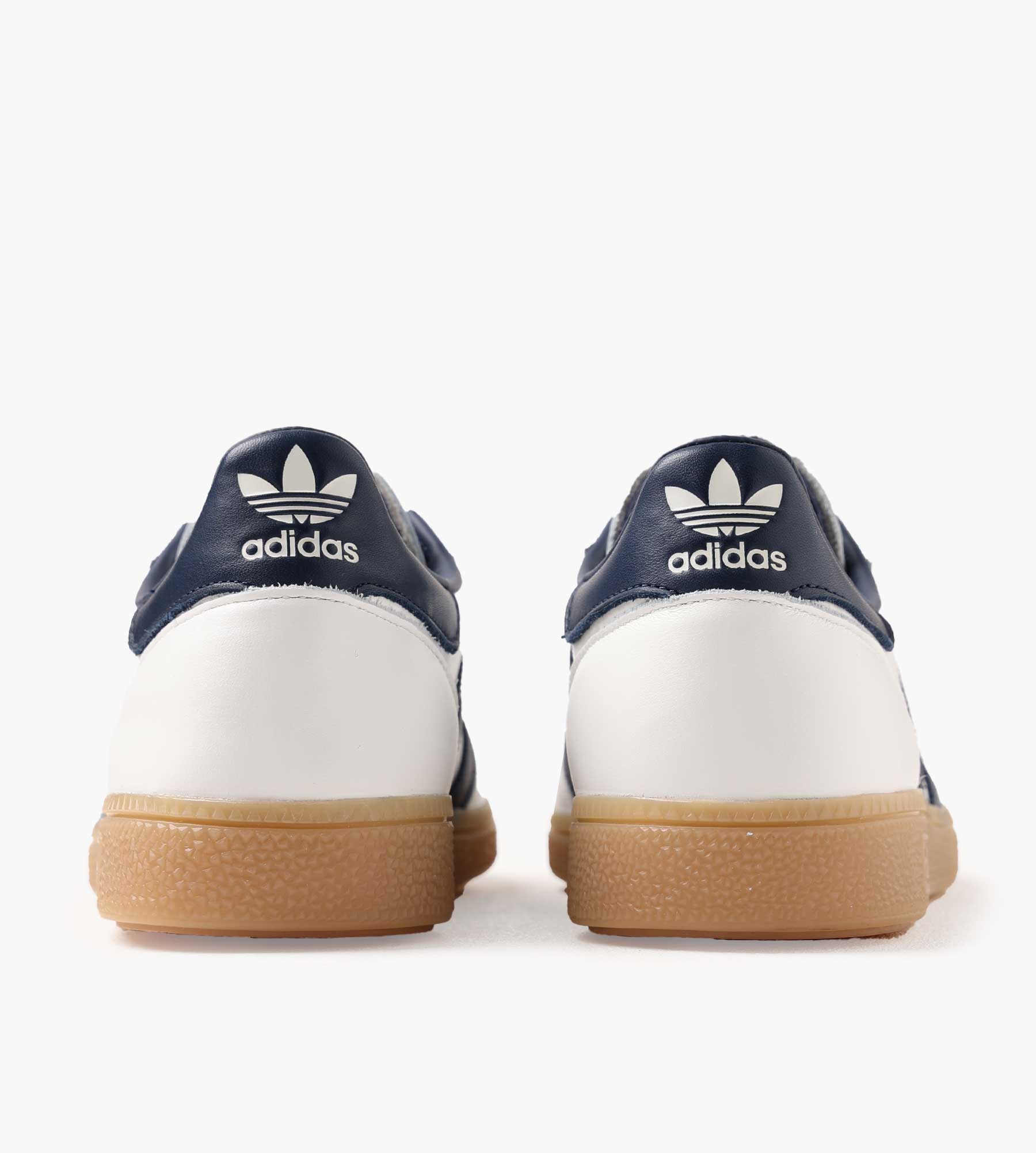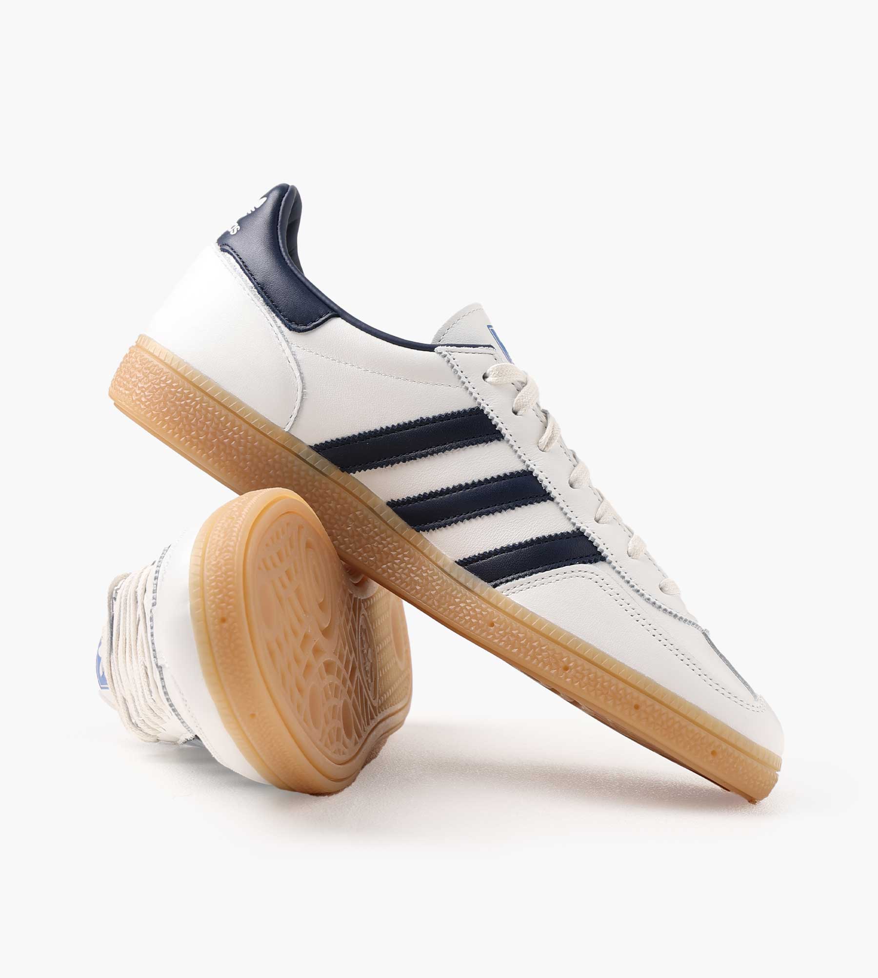 The Adidas Handball Spezial in Core White and Night Indigo revives a classic silhouette, crafted with a premium suede upper that balances durability and a soft, supple touch. A gum rubber outsole anchors the design, delivering reliable grip and stability for both indoor courts and urban environments.