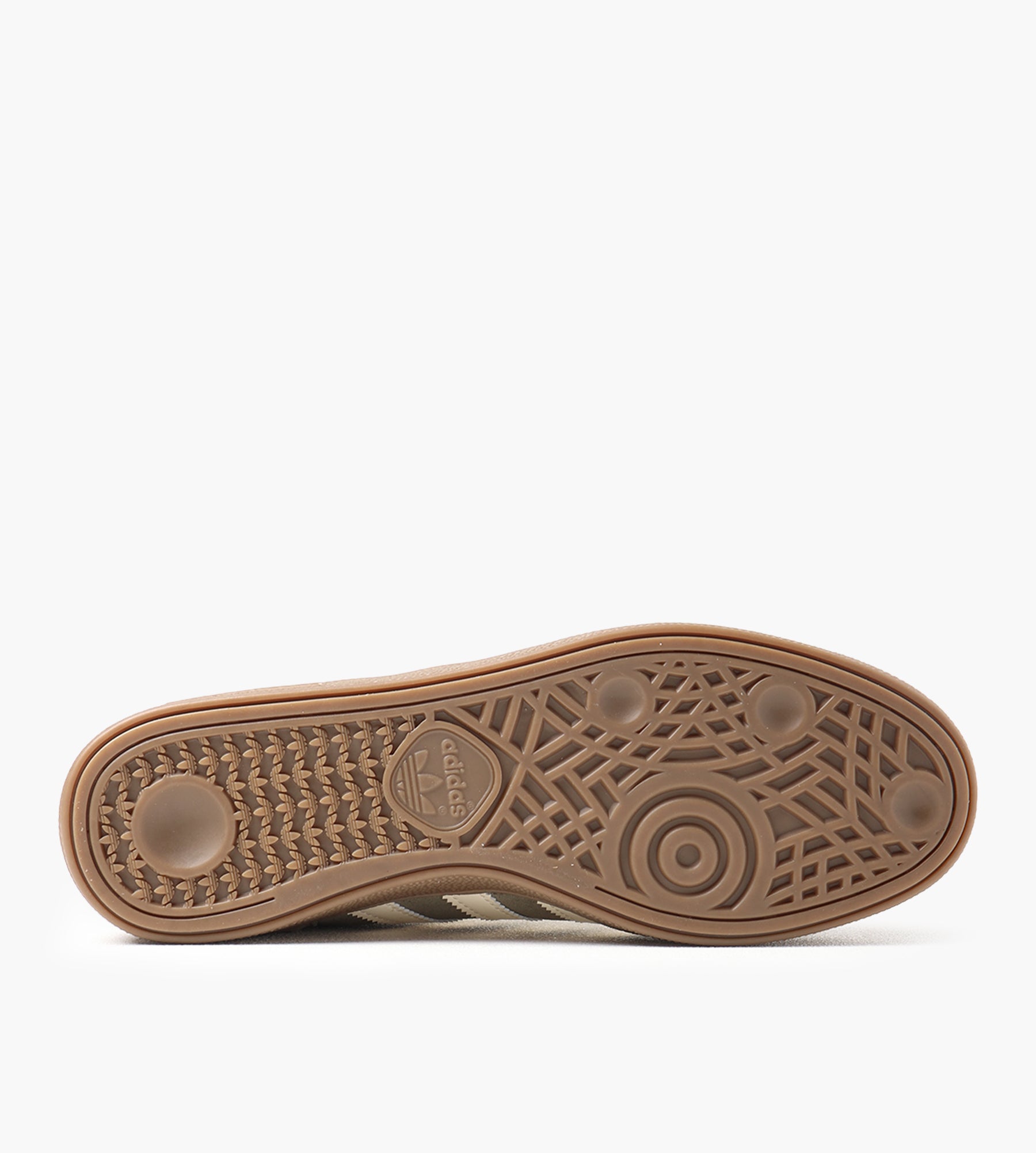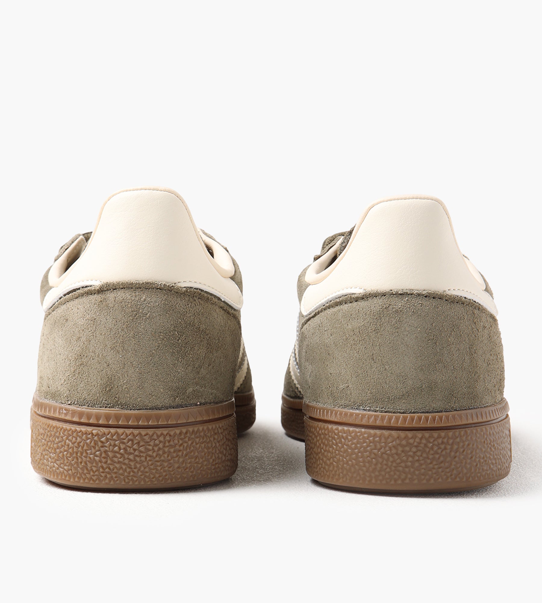 The Adidas Handball Spezial in Olive Strata and Cream White combines premium suede with a semi-transparent rubber outsole, offering a refined take on a classic silhouette. Originally introduced in 1979, this design bridges sportswear heritage with streetwear sensibilities, making it a timeless addition to any rotation.