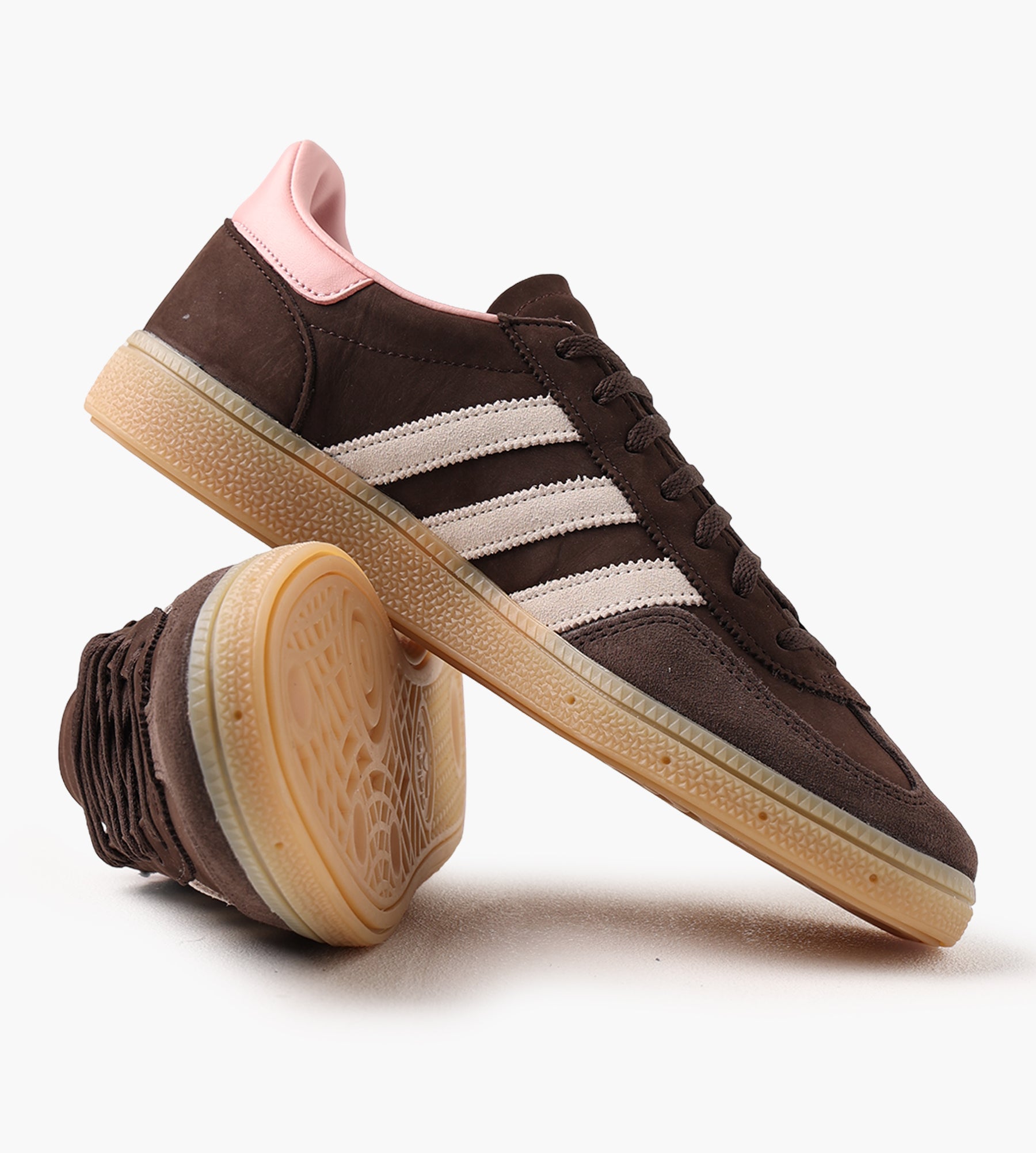 The adidas Originals Handball Spezial W in Dark Brown and Wonder Mauve revisits a classic retro design, crafted with a premium suede upper for a refined yet durable finish. The soft textile lining enhances comfort, while the rubber outsole ensures reliable traction for everyday wear.