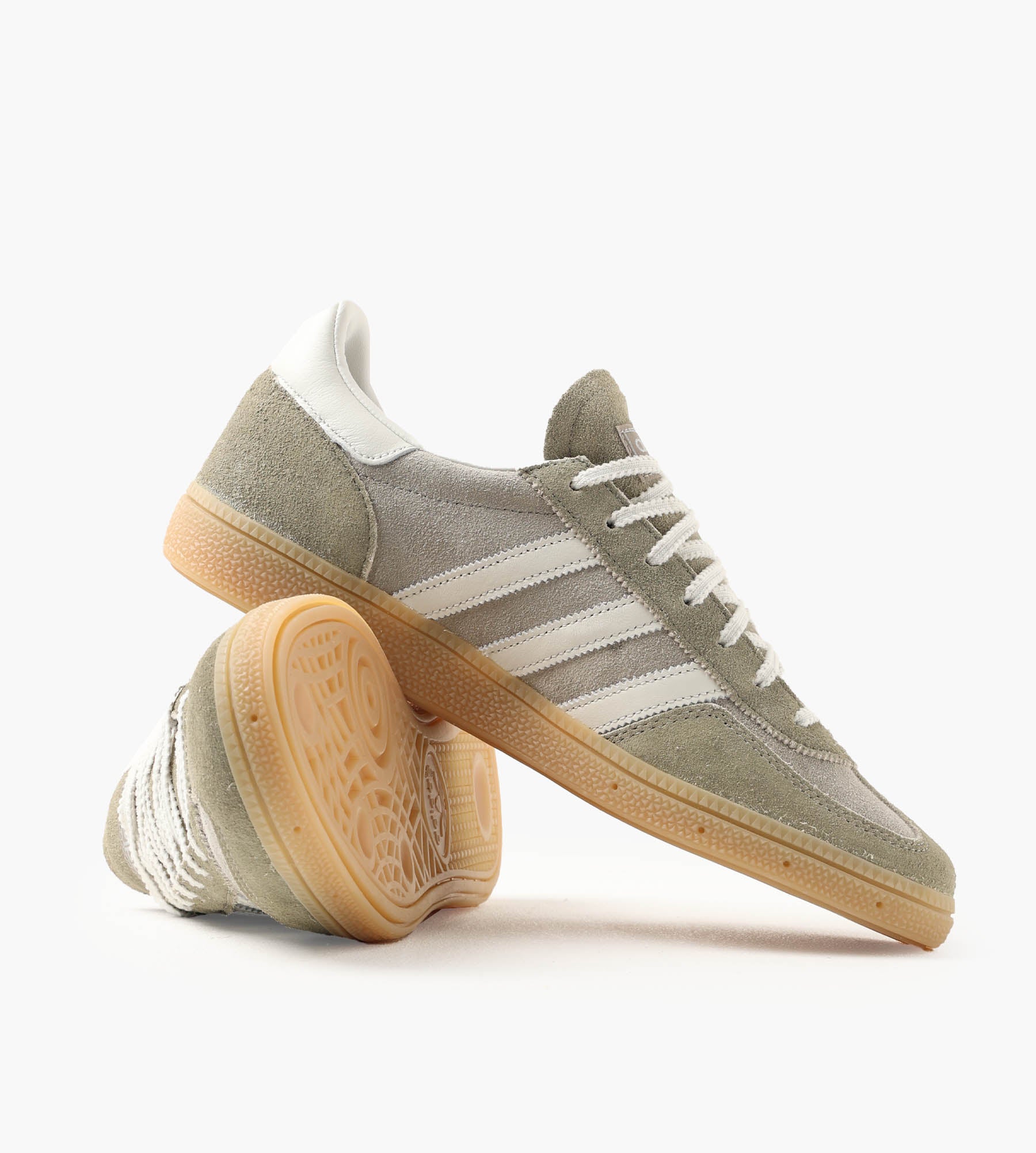 The Adidas Handball Spezial sneakers in Silver Pebble and Orbit Gray reinterpret classic court footwear with modern versatility. Crafted from premium suede, the upper offers a soft yet durable construction, anchored by a gum rubber outsole for reliable grip on indoor and urban surfaces.