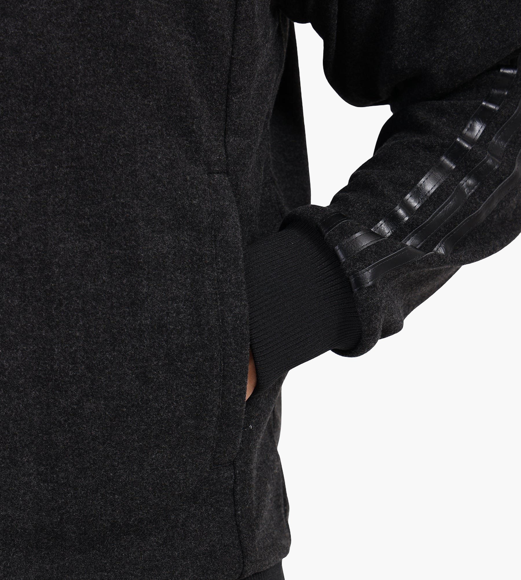 - Ribbed cuffs and hem