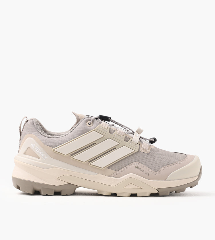 The Adidas Terrex Skychaser GTX in Putbei/Alumin/Wonbei is engineered for trail running, combining technical precision with rugged aesthetics. Built with durable yet lightweight materials, it offers stability and grip on uneven terrain. A GORE-TEX lining ensures waterproof protection while maintaining breathability, keeping feet dry during intense outdoor pursuits.