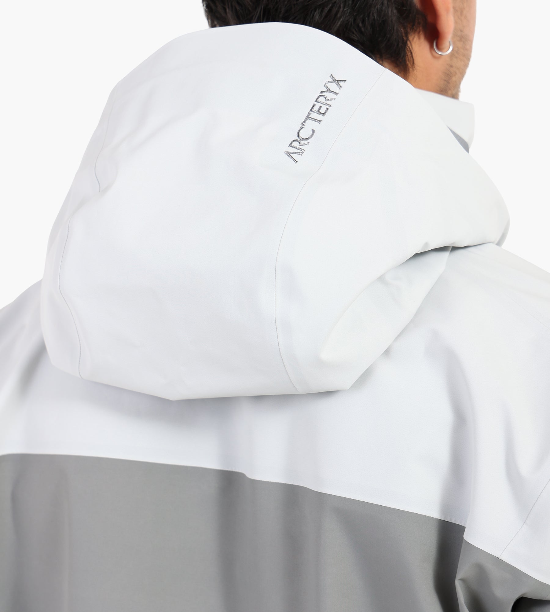 The Arc'teryx Beta AR Jacket in Solitude/Void is crafted from GORE-TEX PRO ePE, offering lightweight, waterproof, and windproof protection with exceptional breathability. Reinforced panels on the yoke and upper arms enhance abrasion resistance, while a PFAS-free DWR finish ensures water beads off effortlessly. Designed with alpine and hiking pursuits in mind, this jacket balances durability and packability for demanding conditions.