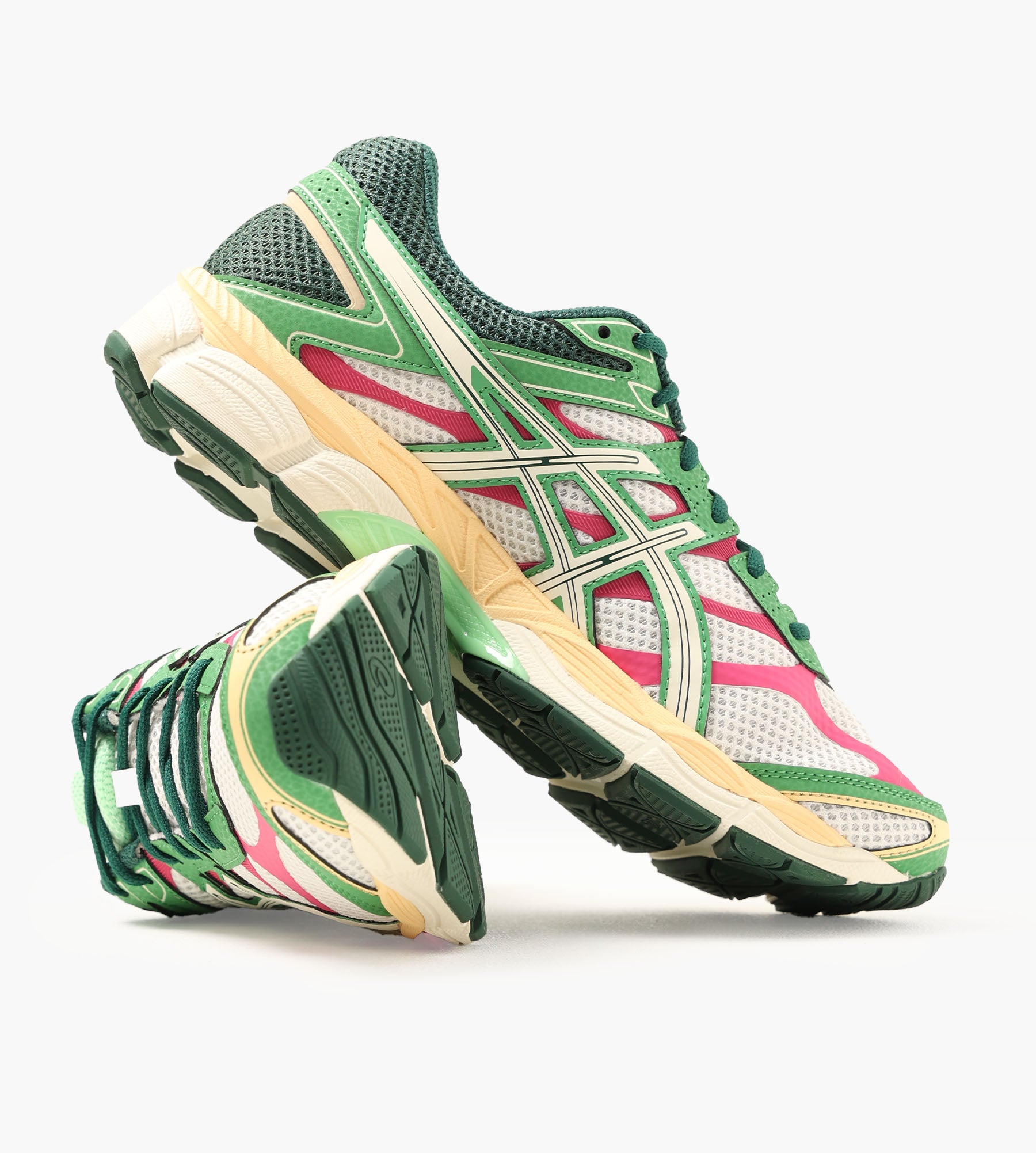 The ASICS GEL-CUMULUS 16 in Cream/Ivory blends matte synthetic leather overlays, no-sew paneling, and open mesh underlays for a breathable yet structured upper. Its technical aesthetic nods to the advanced running shoe designs of the 2010s, delivering both performance and visual appeal. Dual GEL® technology inserts in the rearfoot and forefoot provide targeted cushioning and shock absorption, ensuring comfort across varied terrains.