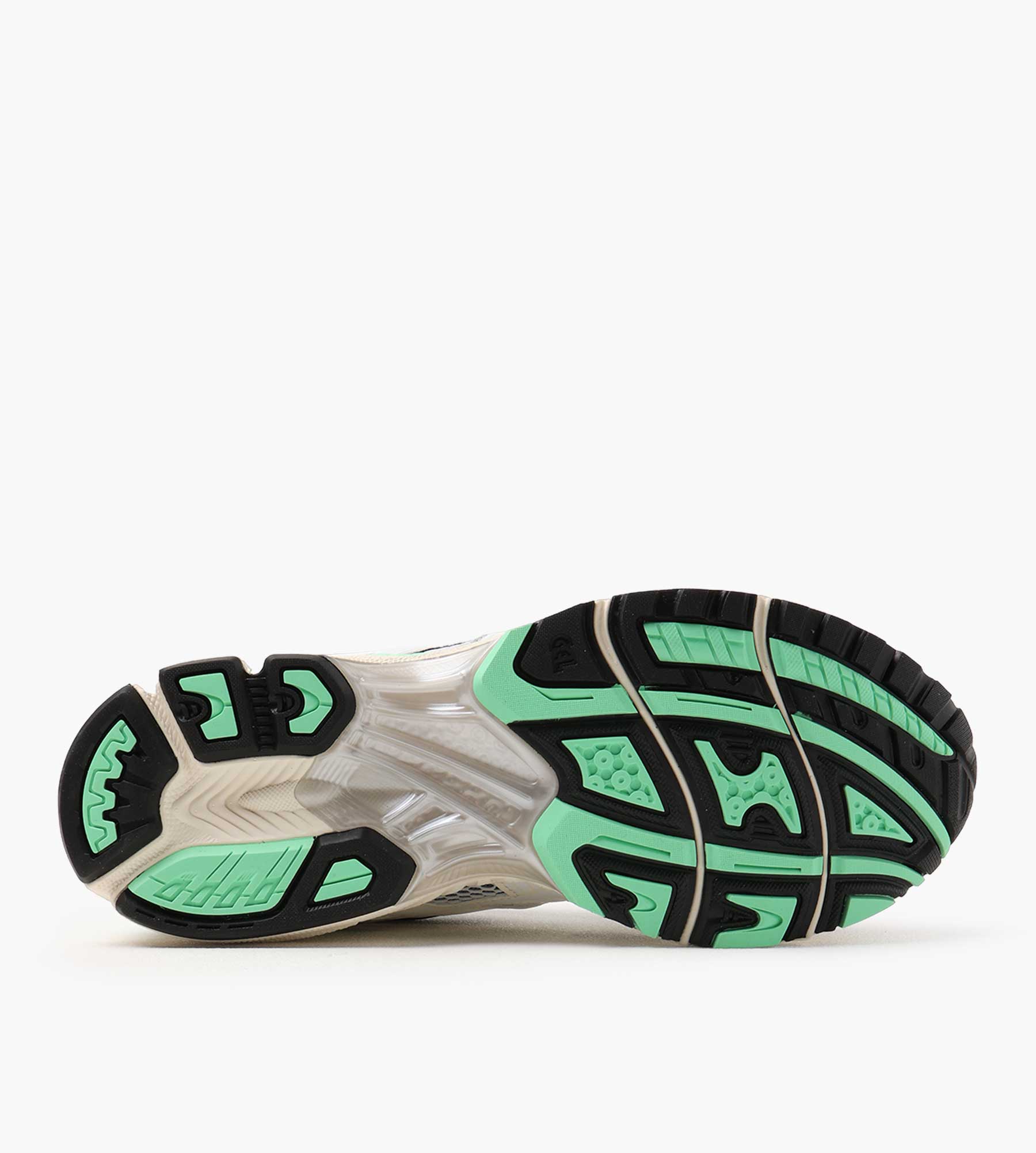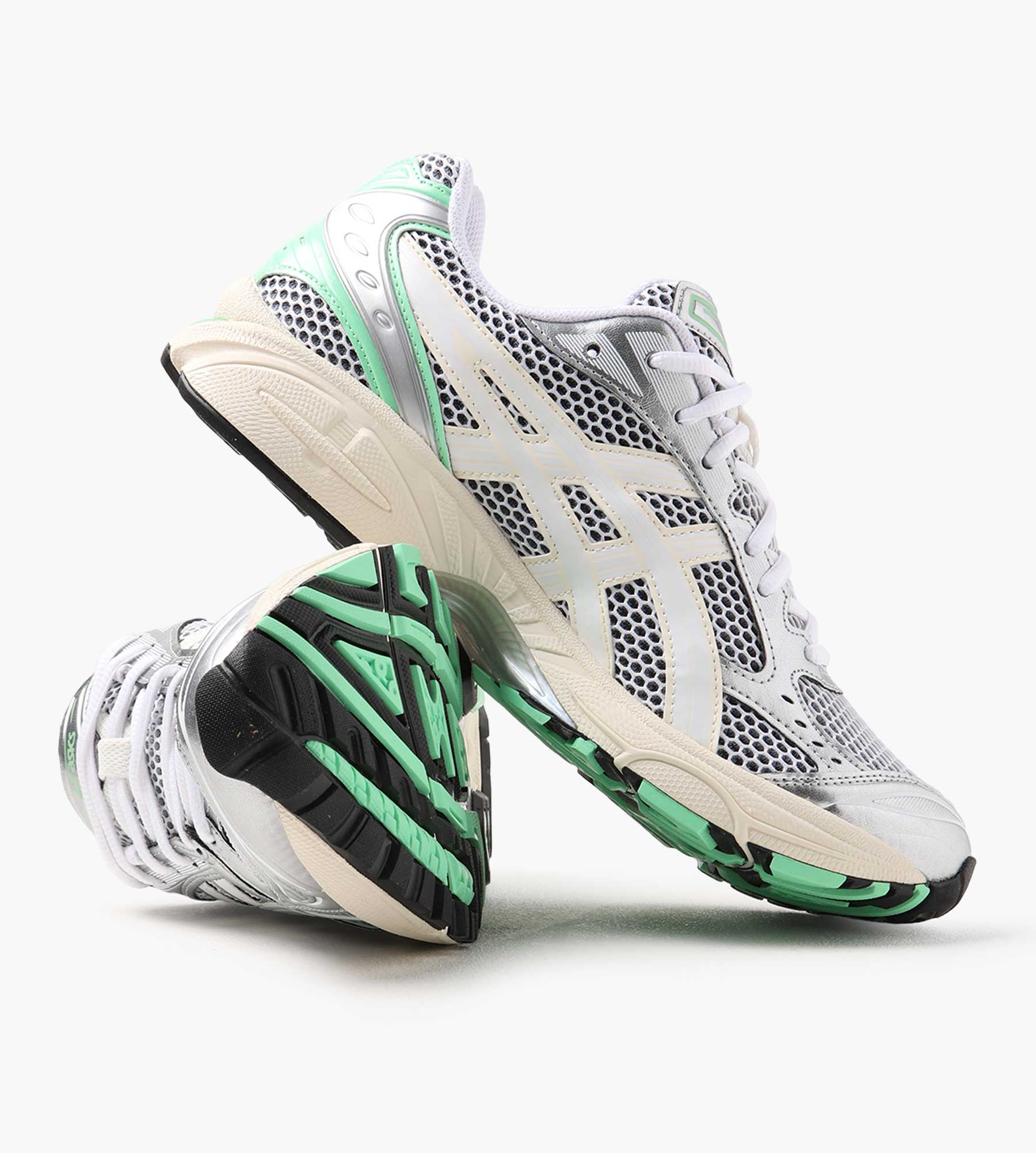The ASICS GEL-Kayano 14 in White/Menthol revisits the 2008 classic, crafted with a synthetic upper that balances durability and breathability. Anchored by ASICS' signature GEL technology, it delivers superior impact absorption for all-day comfort, while the TRUSSTIC support system enhances stability during dynamic movements.