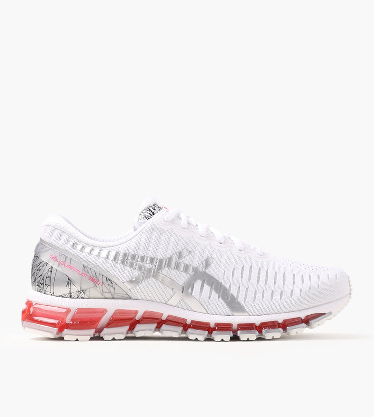 The ASICS GEL-QUANTUM 360™ I in White/Diva Pink pairs jacquard mesh uppers with a breathable, adaptive fit. Its 360-degree GEL™ technology and FF BLAST™ PLUS cushioning, originally designed for runners, are re-tuned for all-day comfort and impact absorption.