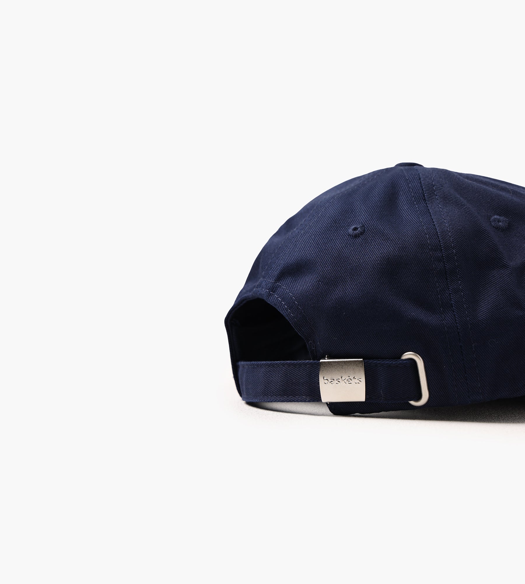 This is the Baskèts Cap in Marine. The cap features script logo embroideries, a regular fit and an adjustable strap at the back, making it ideal for everyday wear.