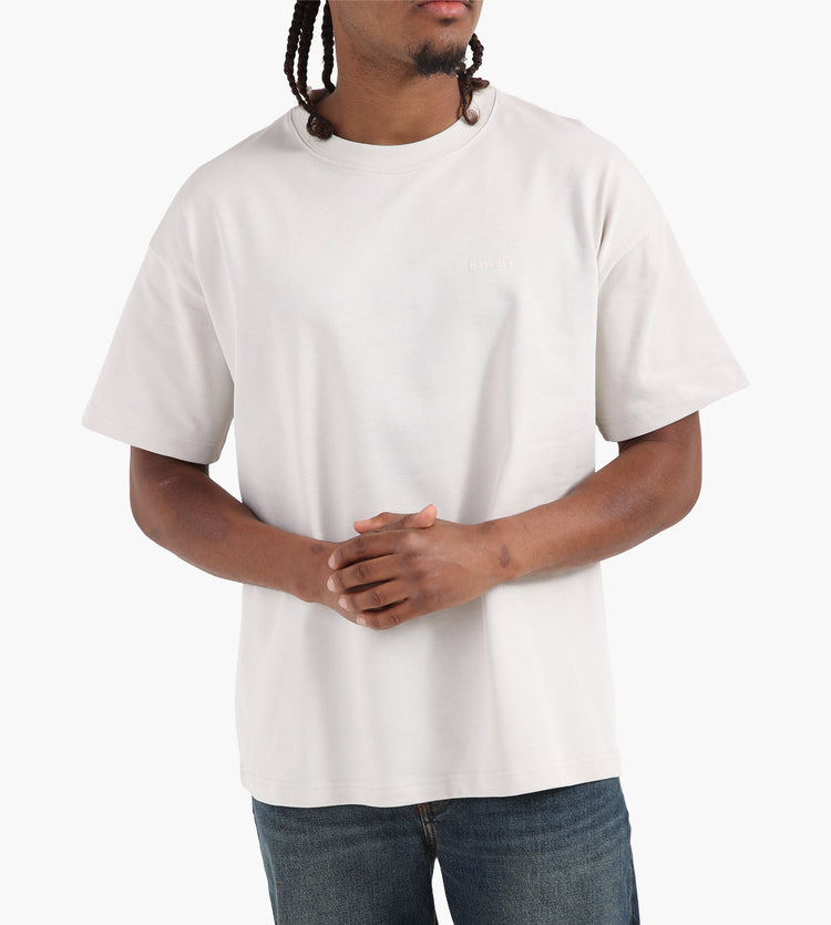 This is the Baskèts Modern Essential Tee in Arctic Grey, cut from 260gsm organic cotton. It features a subtle logo print, an improved relaxed fit, and a round neckline, making it perfect for everyday wear.