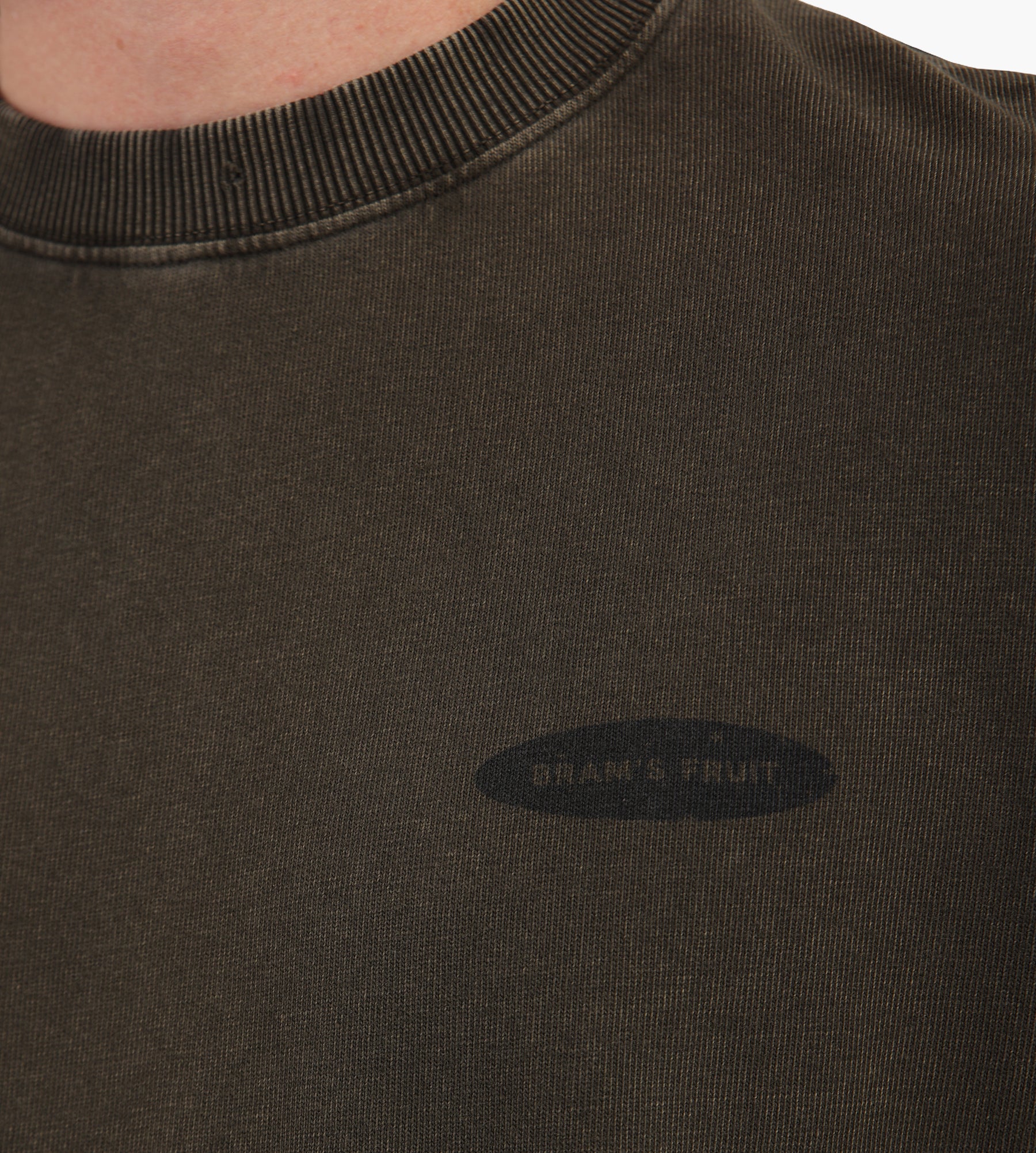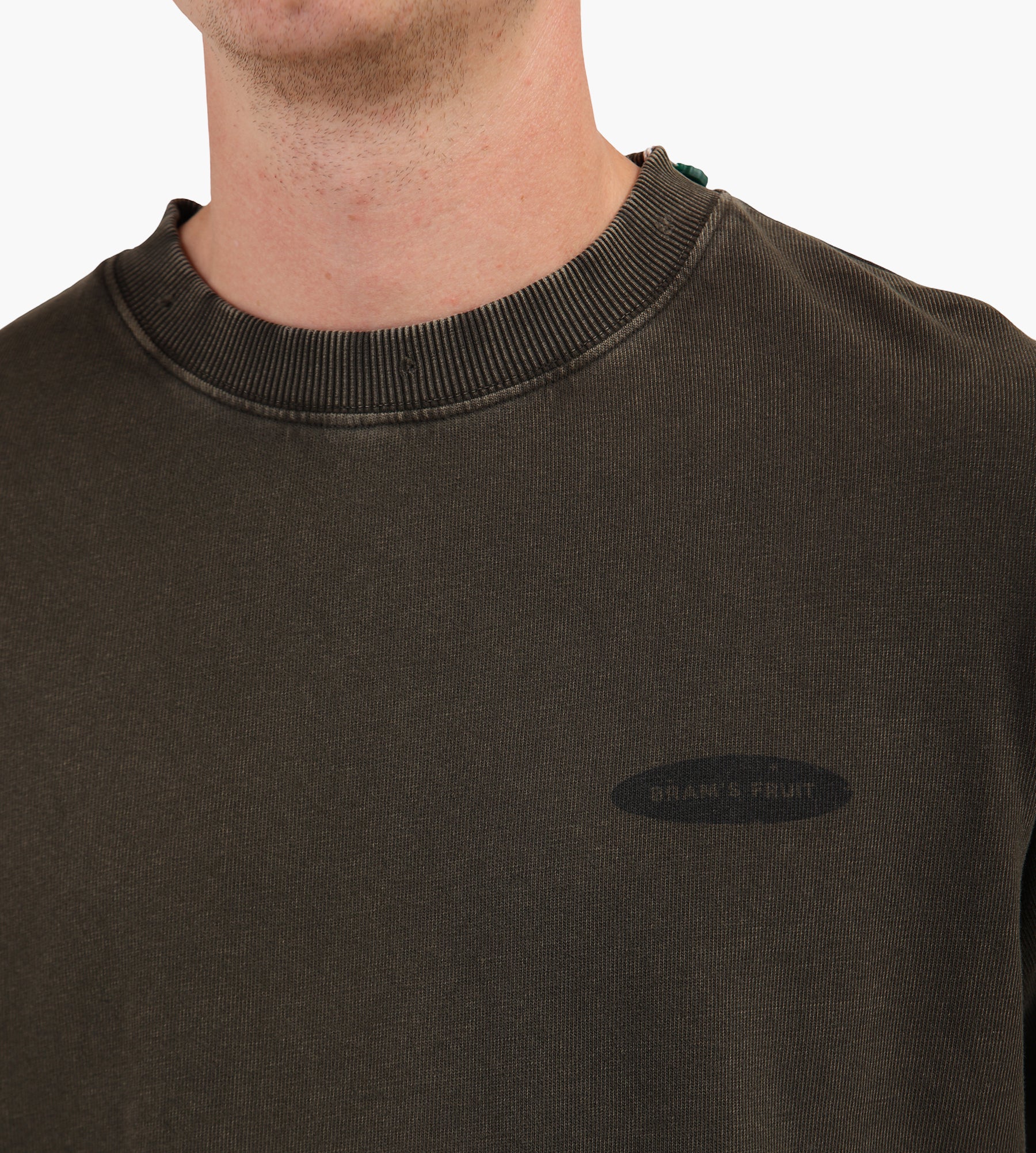 - Distressed ribbed crewneck