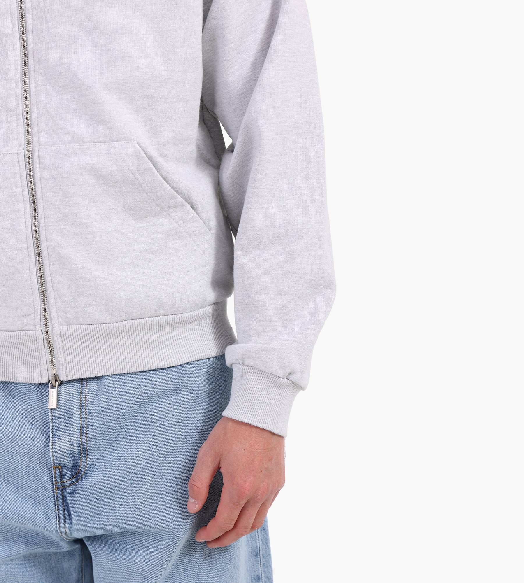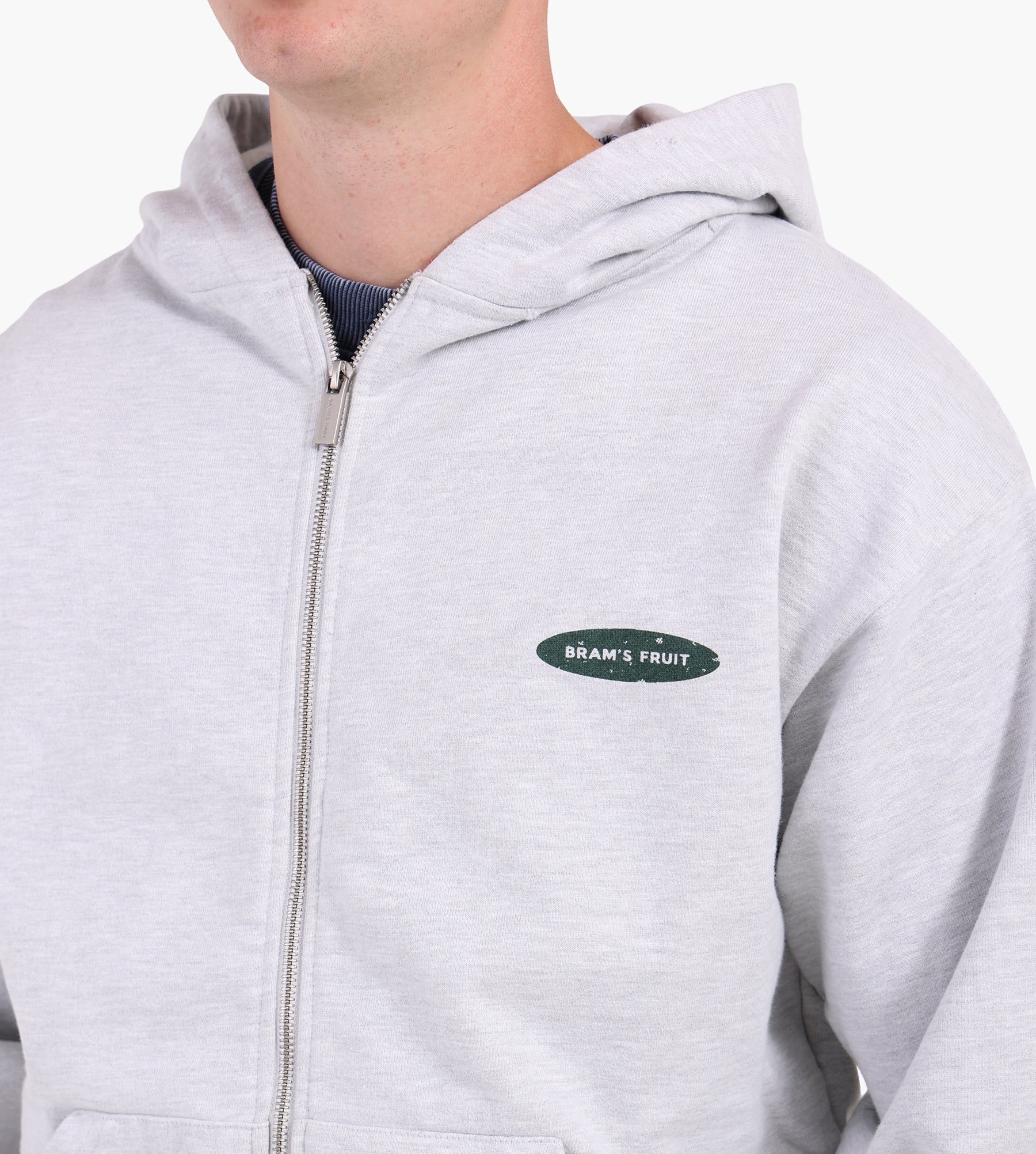 The Bram's Fruit Distressed "F*ck Off" Zipper Hoodie in Gray Melange is crafted from 600 GSM premium washed cotton, delivering a weighty, soft texture that holds its shape. Distressed detailing and a matte silver double zipper add a rugged edge, while the relaxed fit ensures comfort and versatility for layering.