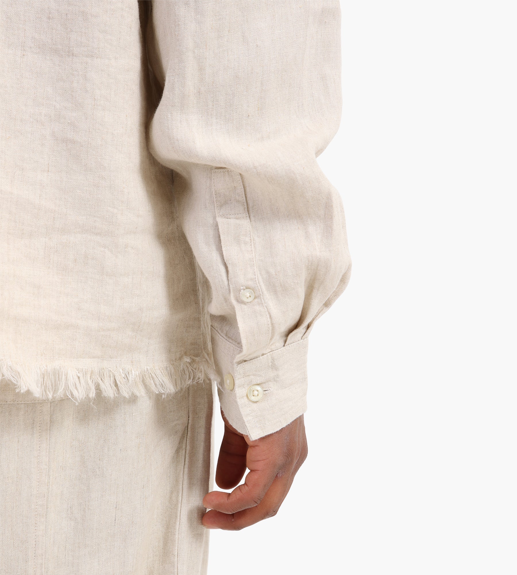 The Bram's Fruit Distressed Linen Shirt in Natural Linen offers a relaxed, vintage-inspired look with breathable comfort. Its long sleeves and distressed details create effortless, timeless style.