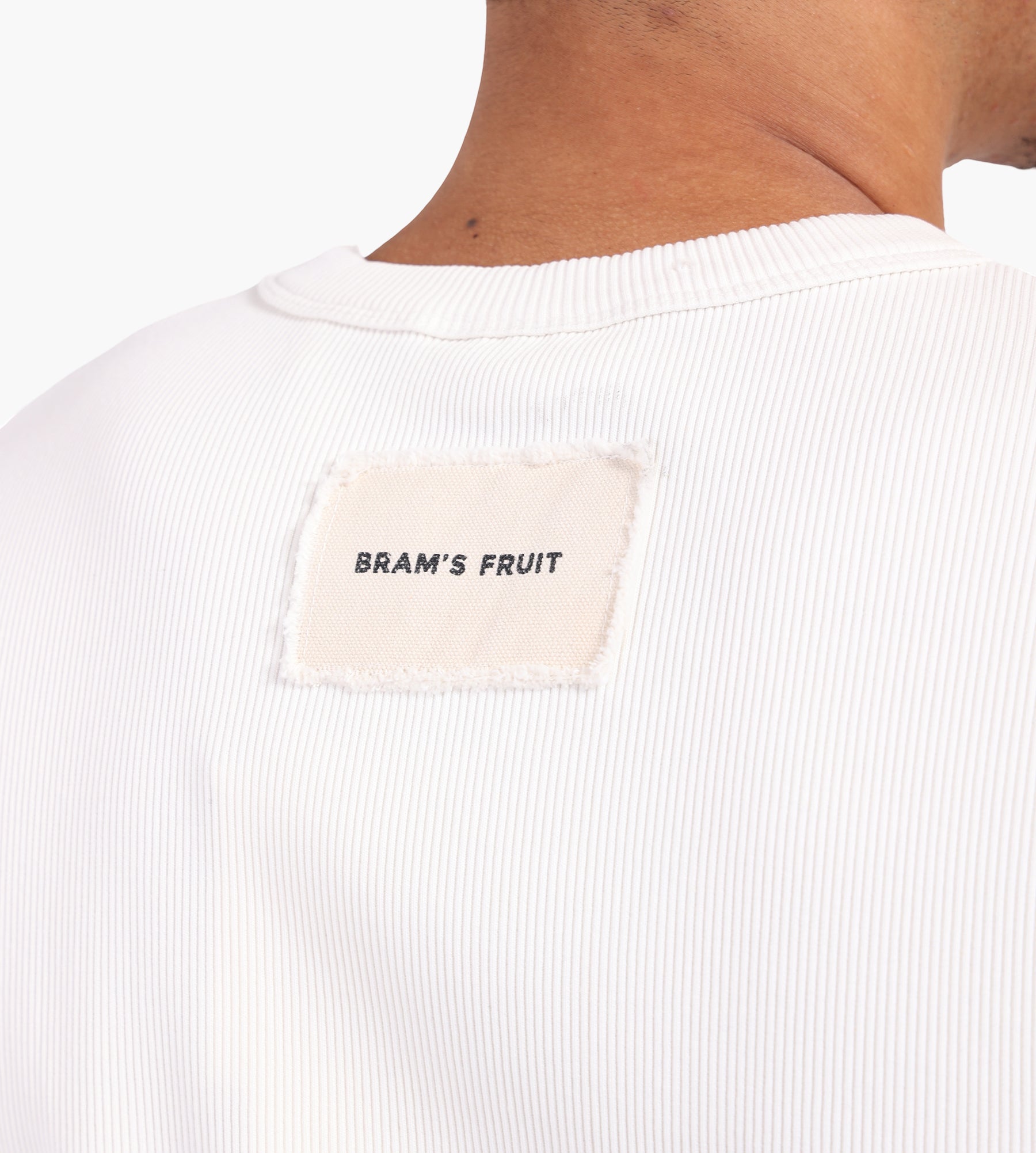 The Bram's Fruit Distressed Rib T-shirt in White offers a minimalist take on the classic plain white tee, reimagined with a textured ribbed finish and subtle distressing. Its likely cotton construction ensures a soft, breathable feel, making it a versatile staple for daily wear or as a layering piece.