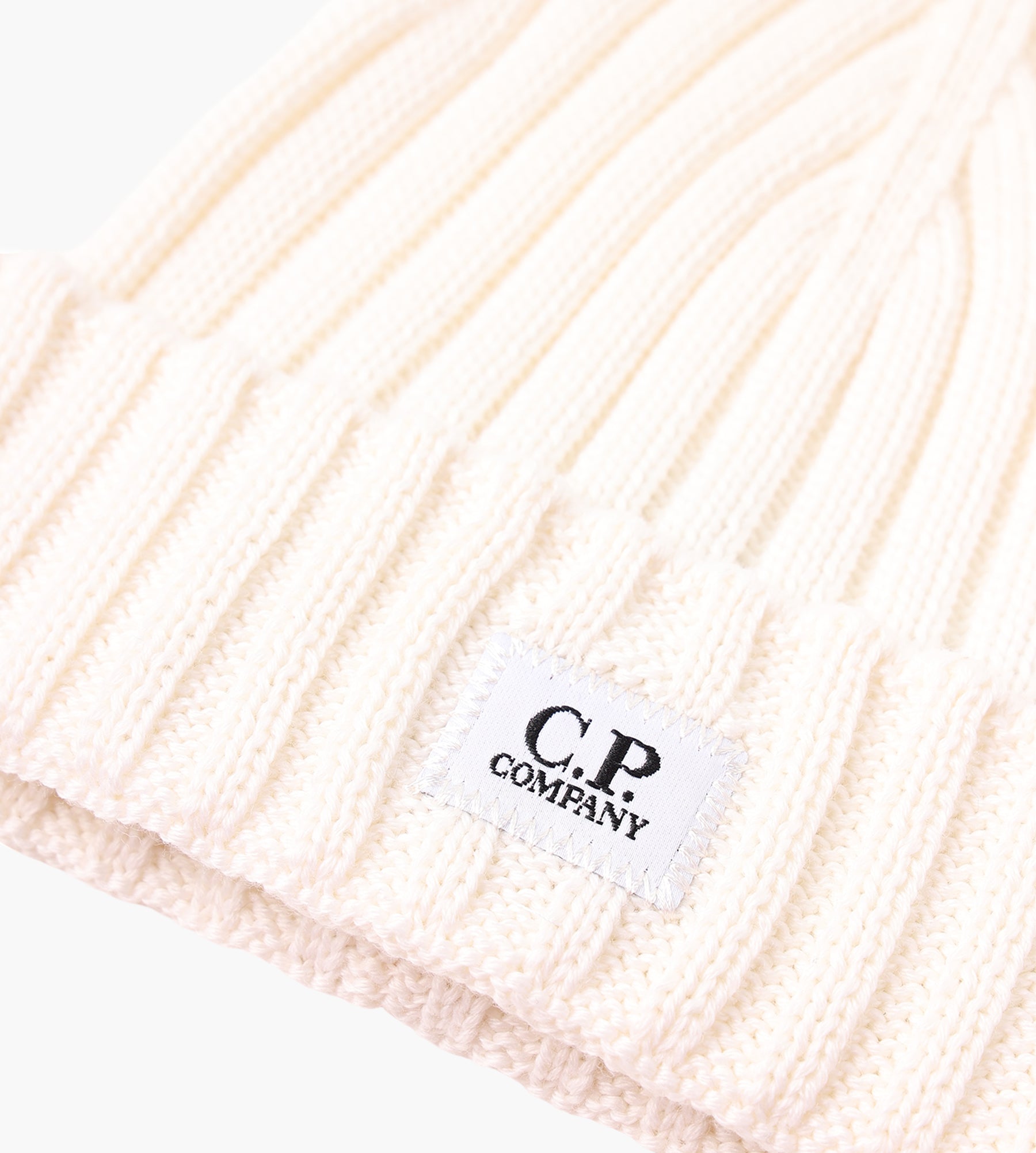 C.P. Company Accessories Knit Cap In Extrafine Merino Wool Gauze White