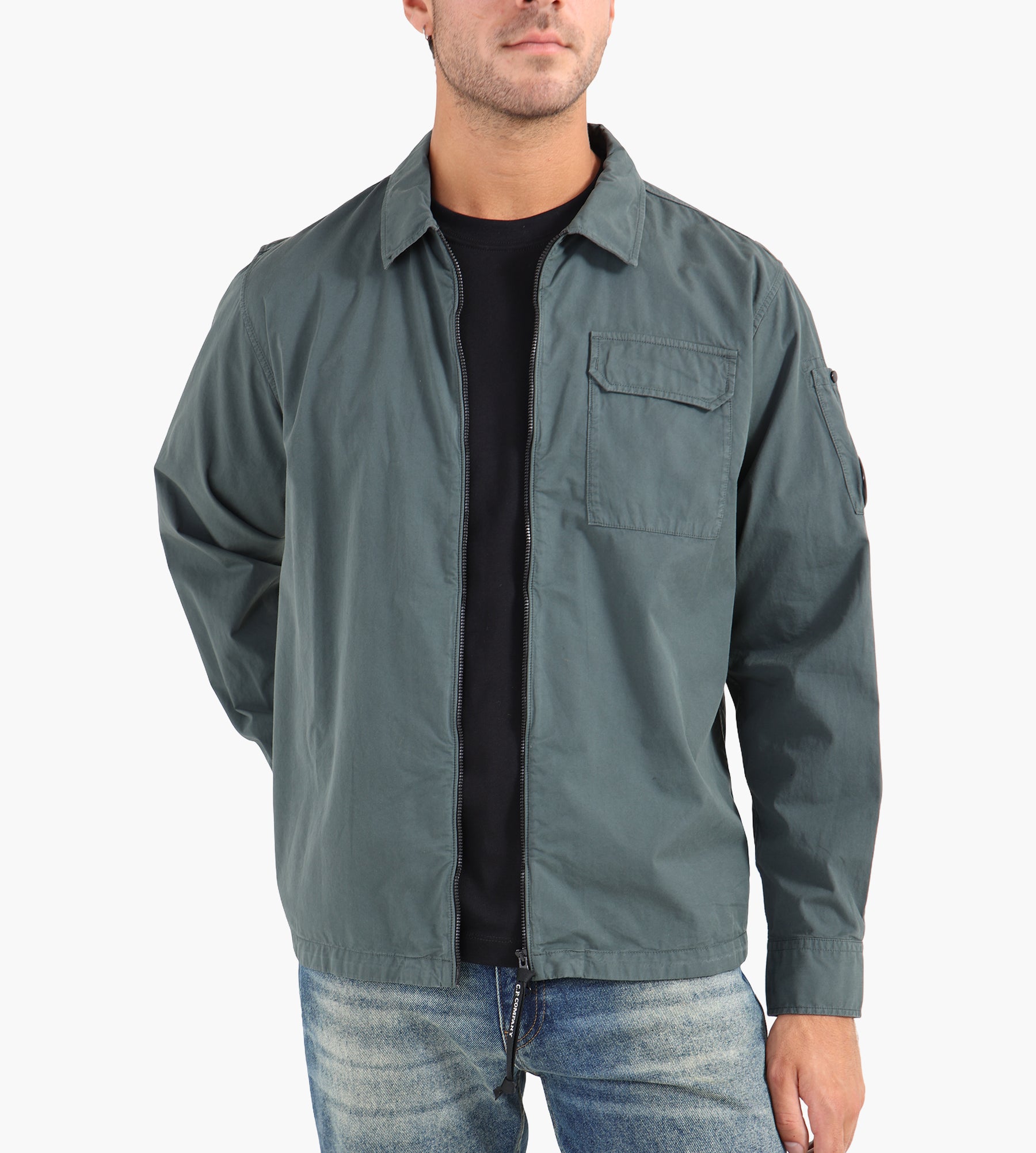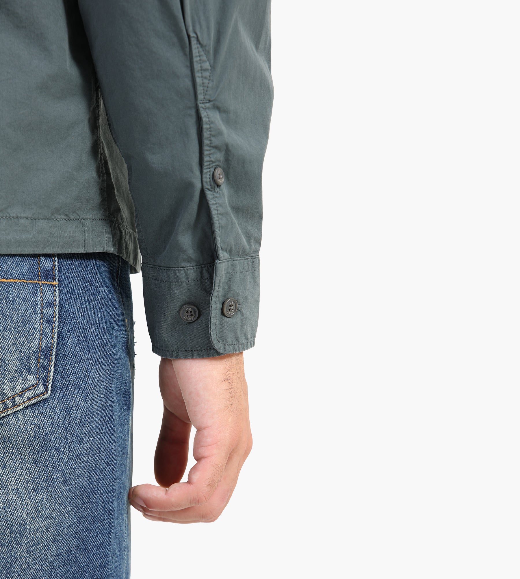 Designed with functionality in mind, it features a classic collar, adjustable button cuffs, and chest flap snap pockets for secure storage. The brand’s iconic Lens detail adds a signature touch, while the regular fit allows for easy layering over tees or under heavier jackets. Whether styled as a shirt or a light jacket, this piece delivers understated utility and comfort.