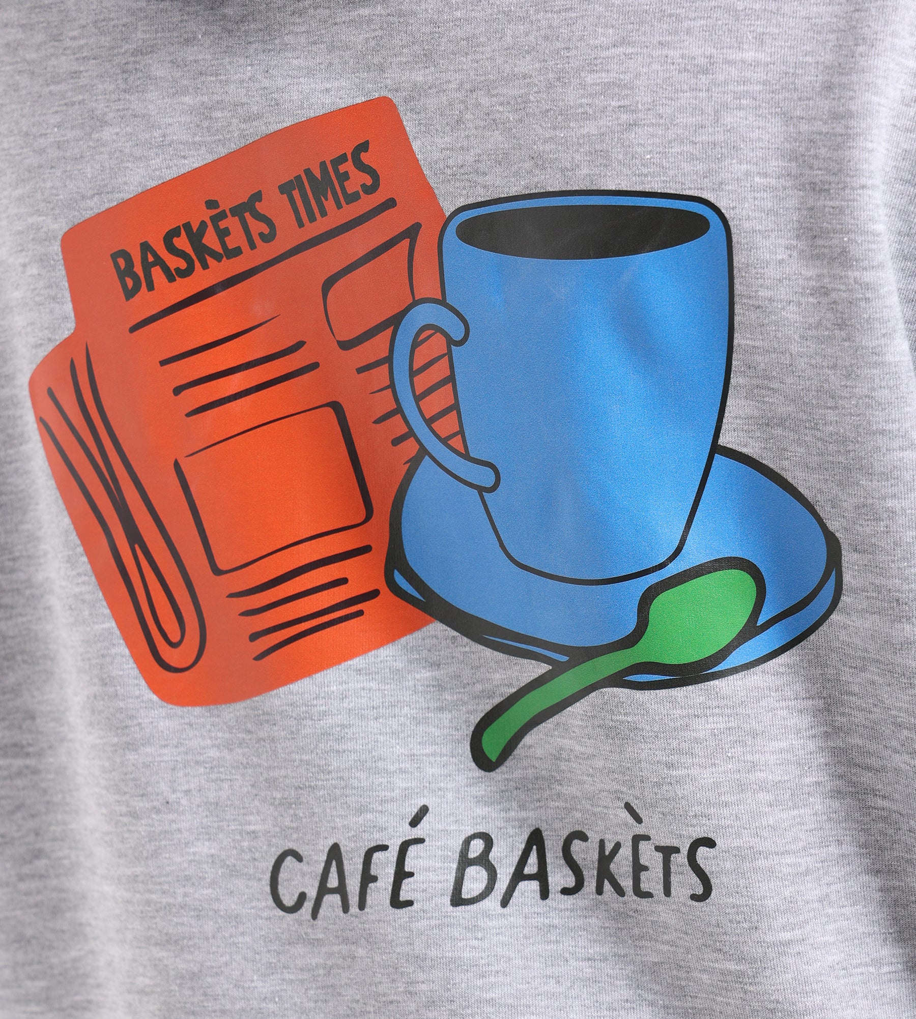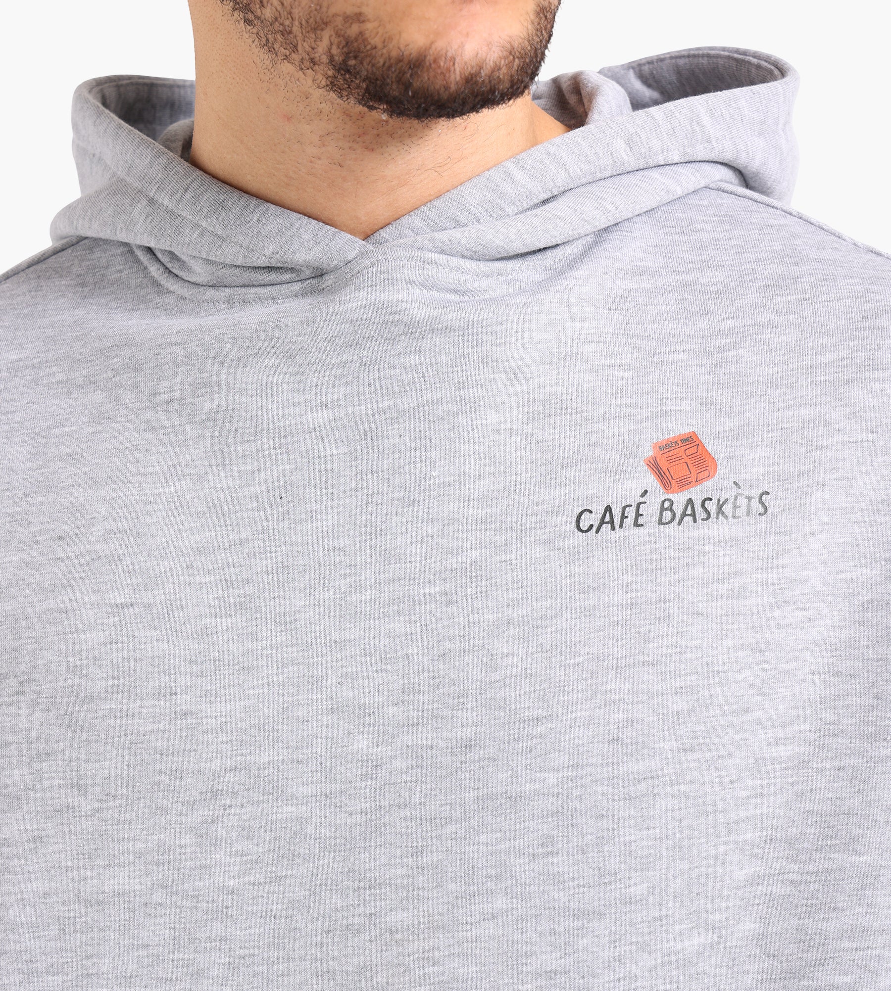 This is the Café Baskèts Times Hoodie in Grey, cut from 260gsm organic cotton. Made from high-quality cotton, it offers a soft and durable feel, ensuring all-day comfort.