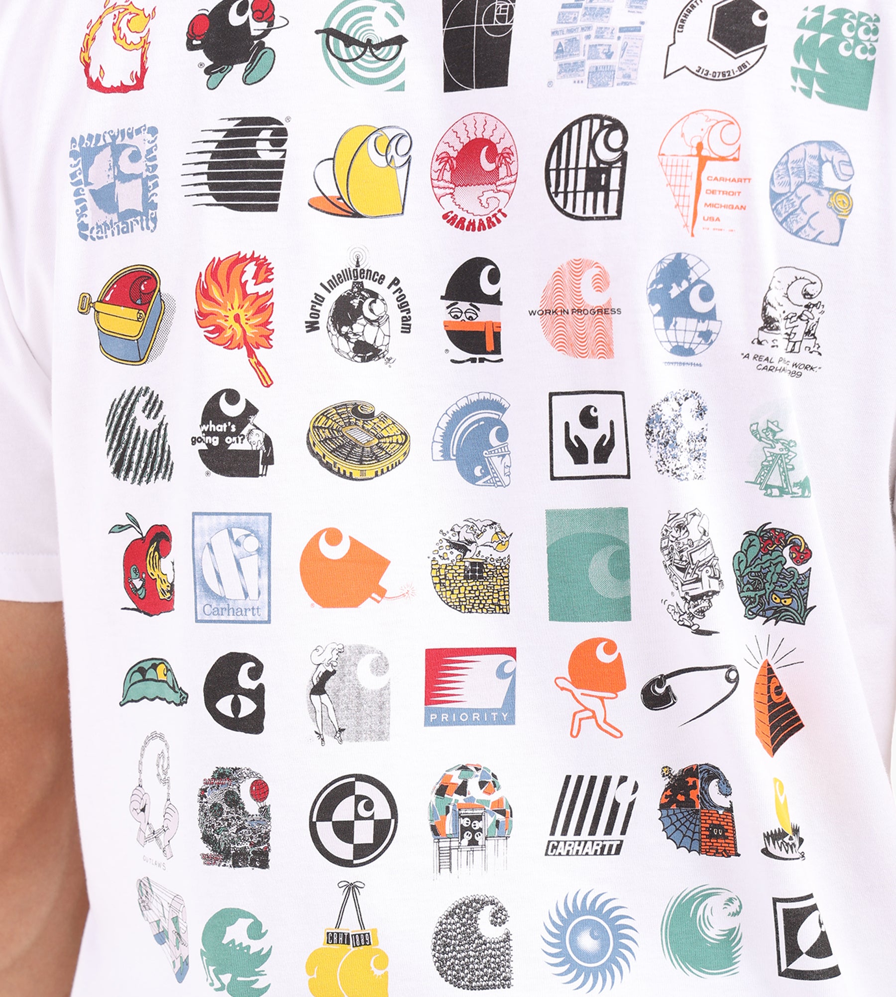 The Carhartt WIP C Logo Archive T-Shirt in White is crafted from 100% organic cotton, offering a soft yet durable midweight jersey construction. Its loose fit and dropped shoulders ensure unrestricted movement and a relaxed silhouette, while the crew neckline anchors its versatile design. A showcase of the brand's heritage, this piece features bold graphic prints of multiple "Carhartt WIP" "C" logo designs on both the front and back.