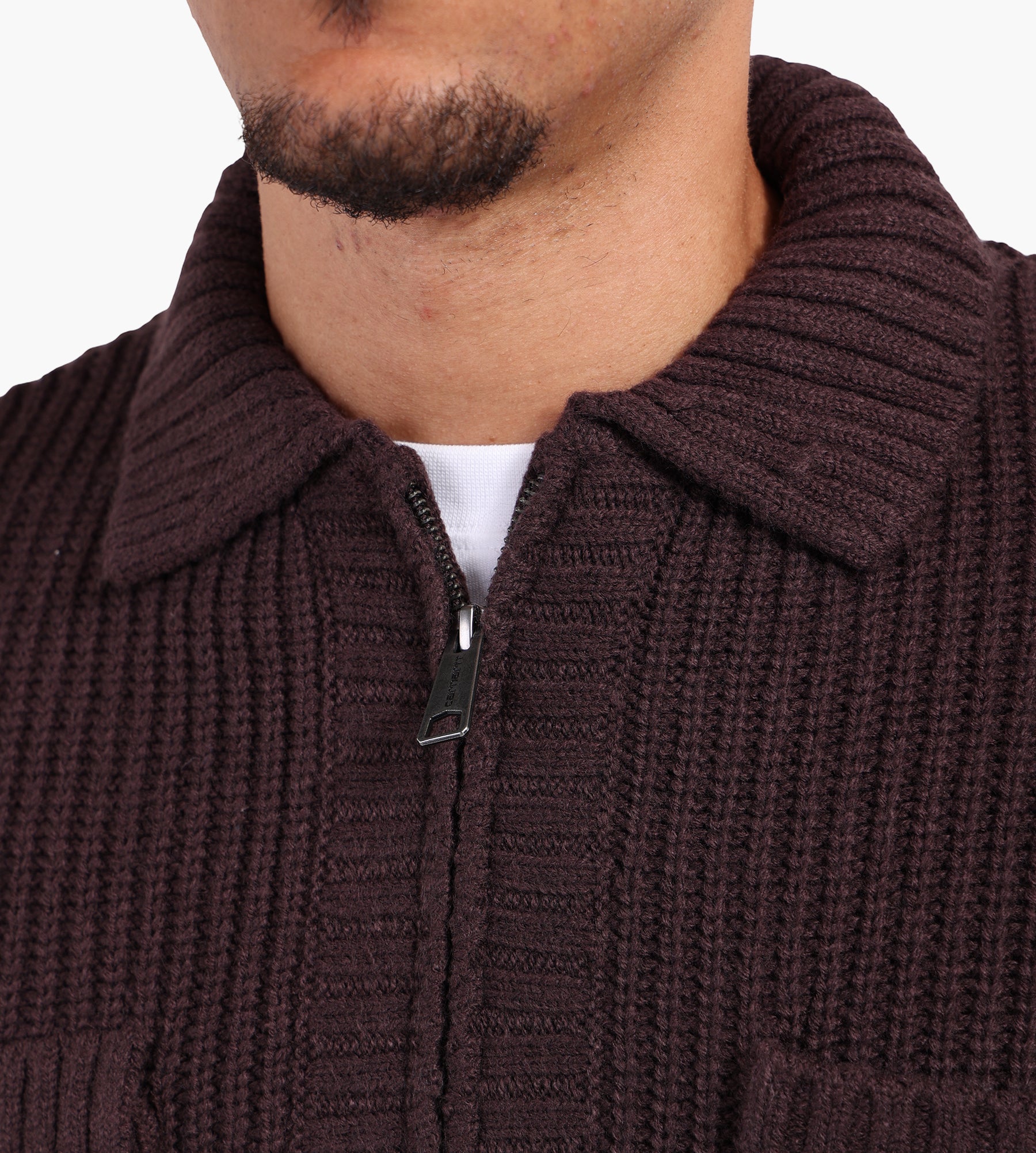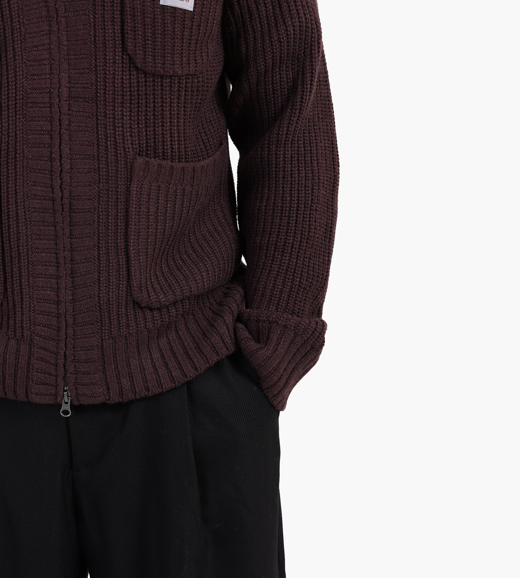 The Carhartt WIP Chore Knit Jacket in Fleur De Sel Beige combines a chore coat silhouette with the versatility of a zip-up jacket. Crafted from a robust 3-gauge knit blend of 75% acrylic, 15% wool, and 10% nylon, it balances warmth with durability for transitional layering. Fully-fashioned knitting at the armholes enhances its structure, while the branded two-way zip offers adaptable styling and ventilation.