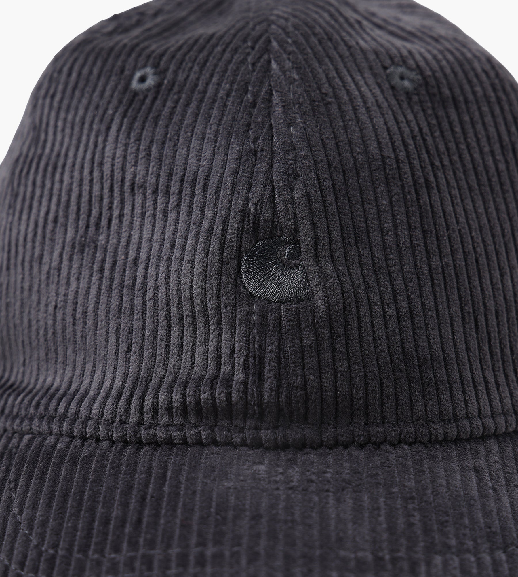 The Carhartt WIP Harlem Cap in Graphite/Graphite is made from 100% cotton corduroy, with a 9-wale texture that merges durability and a soft, refined hand. Its six-panel construction and firm, curved peak deliver a timeless silhouette, while the embroidered Carhartt WIP 'C' logo on the front adds a subtle branded touch.