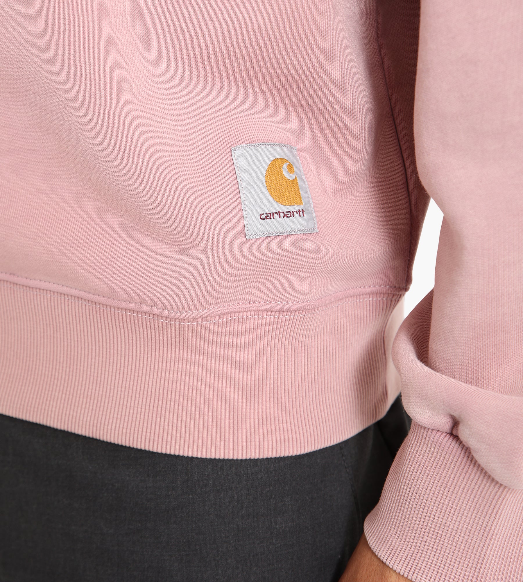 The Carhartt WIP Hudson Sweatshirt in Daphne is crafted from 100% heavy unbrushed cotton jersey, offering a robust yet breathable layer for everyday wear. A chalk wash treatment lends the fabric a subtly faded effect, creating a lived-in look that enhances its casual appeal. Ribbed edges and a classic crew neck anchor the design, while the loose fit ensures unrestricted comfort.