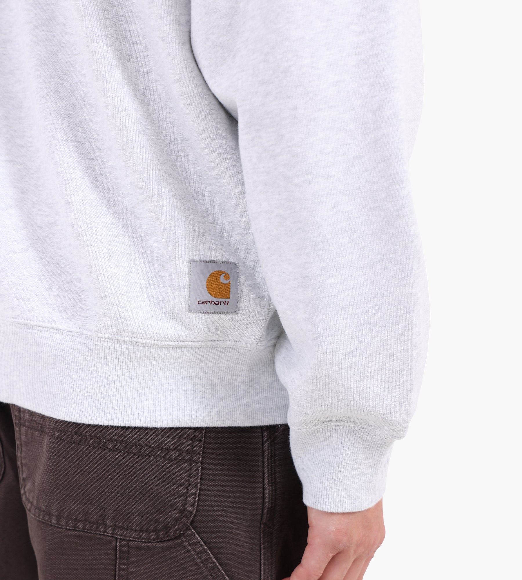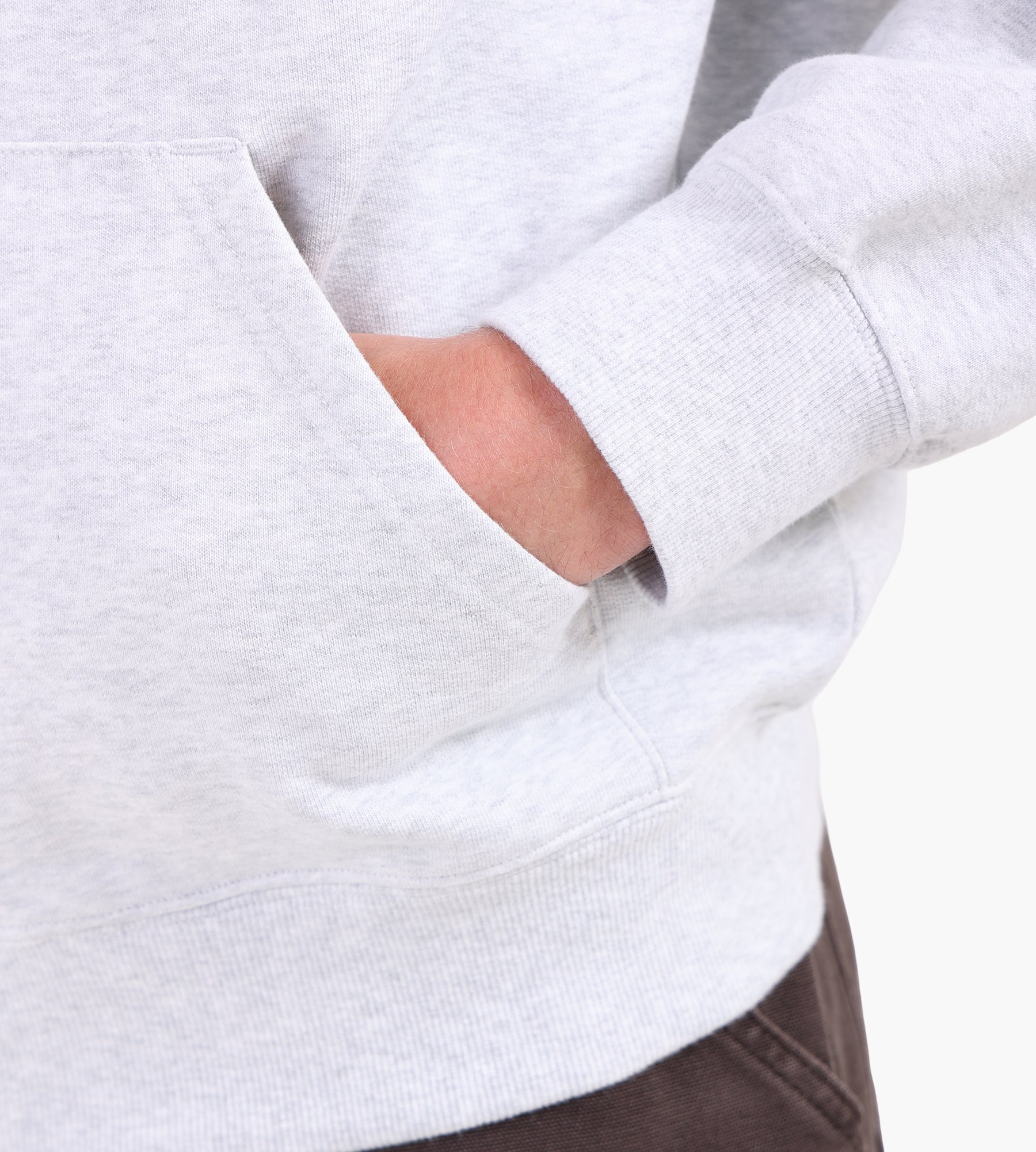 The Carhartt WIP Hooded Mini Wip Sweat Jacket in Ash Heather (Stone Washed) is crafted from a durable heavyweight polycotton blend, with 80% cotton and 20% polyester. Its brushed, fleece-like backing enhances warmth and comfort, making it a reliable layer for cooler days. The muted Ash Heather tone pairs seamlessly with a range of casual essentials, offering understated versatility.