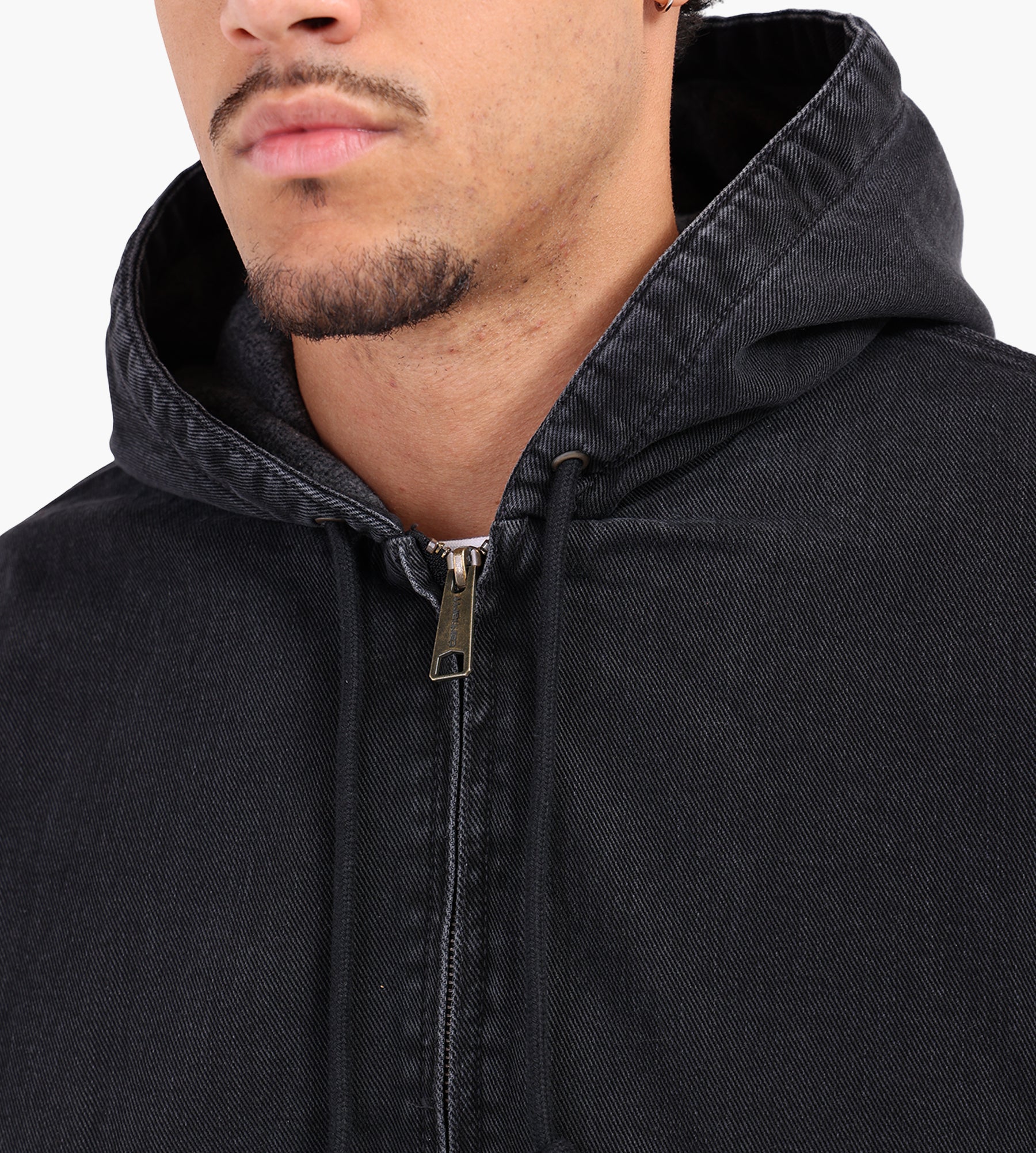 The Carhartt WIP OG Active Jacket in Black is constructed from durable, heavyweight canvas, offering a robust layer designed to withstand daily demands. Its deep black finish is garment-dyed for a rich, uniform tone that evolves with wear, adding character over time.