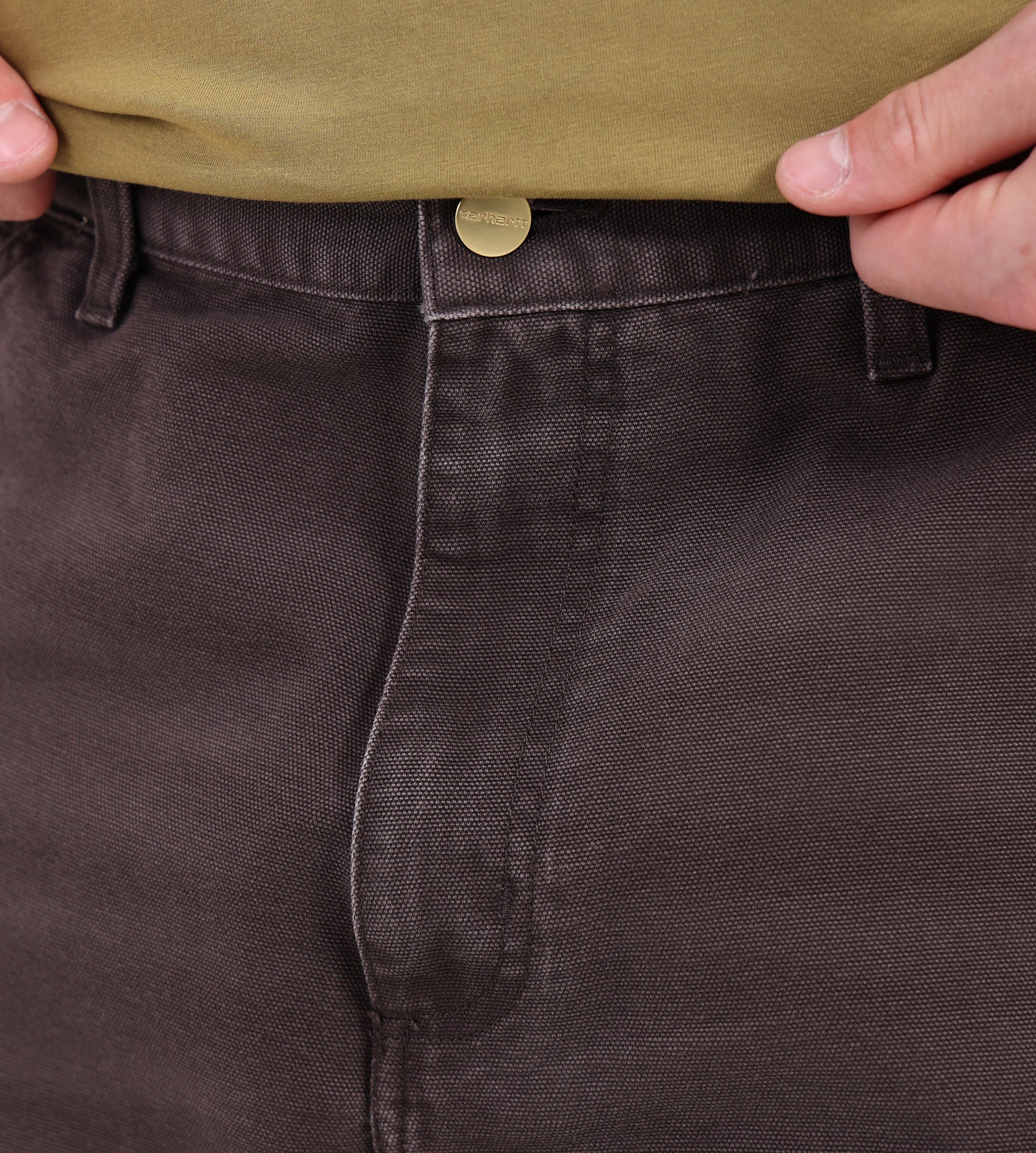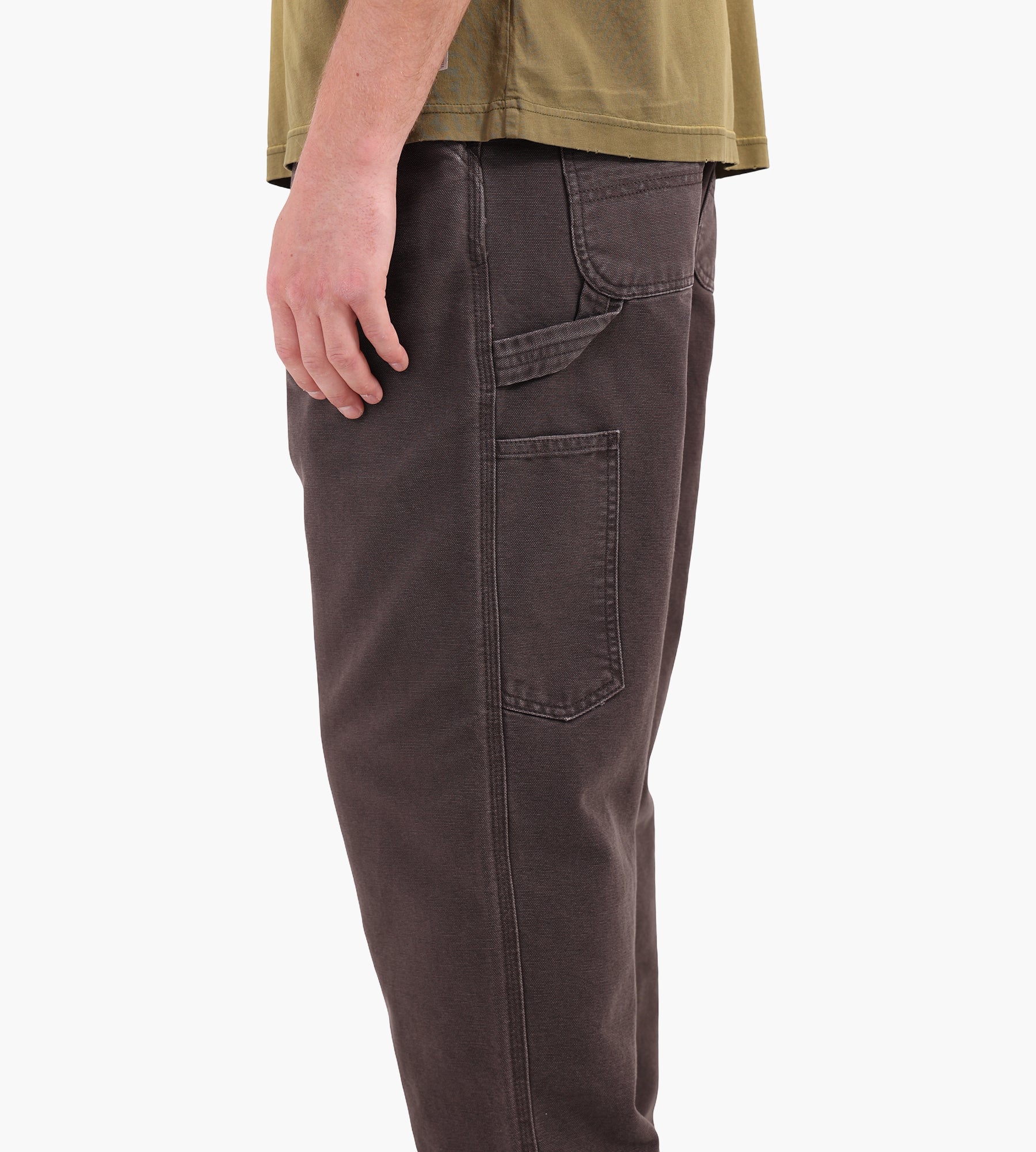 The Carhartt WIP Single Knee Pant in Tobacco is crafted from 100% organic cotton 'Dearborn' Canvas, a robust 12 oz fabric known for its durability and gradual softening over time. Triple-stitched seams and bartack reinforcements at stress points underscore its workwear heritage, while tool pockets and a hammer loop add practical utility.