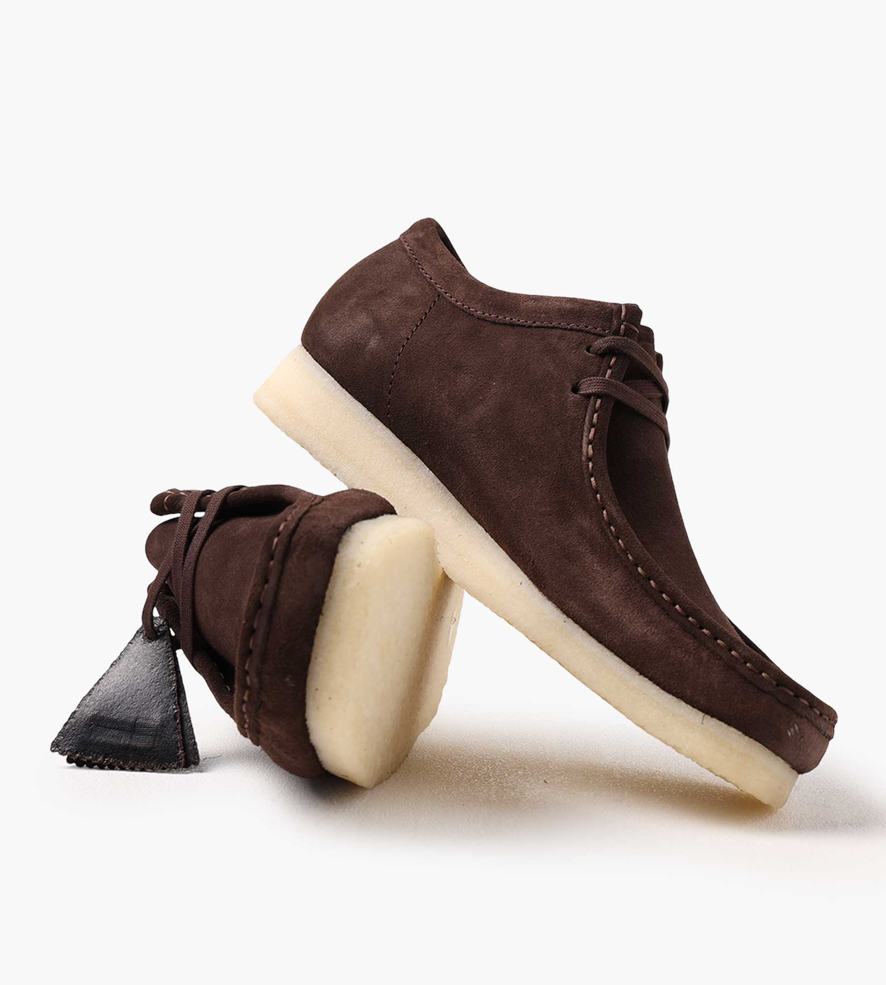 The Clarks Originals Wallabee in Dark Brown Suede is a timeless moccasin-style shoe, crafted from premium suede for a soft yet durable finish. Its iconic silhouette is anchored by clean lines and hand-stitched detailing, ensuring a refined look that transitions effortlessly between casual and formal settings.